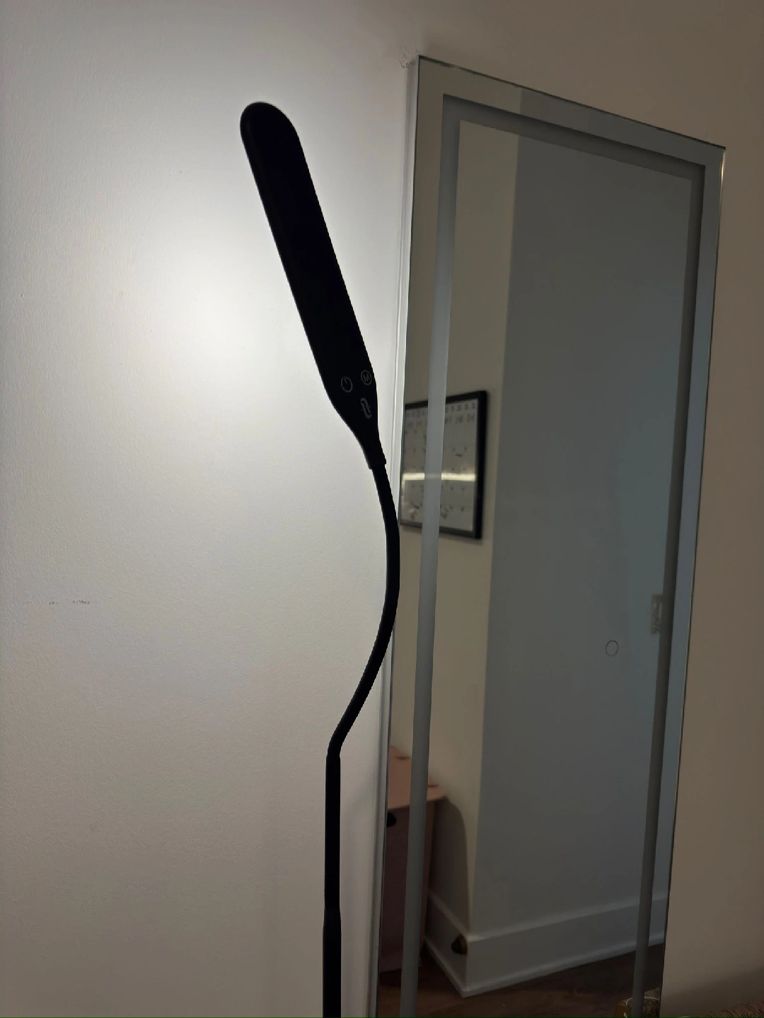 Selling a black OttLite LED floor lamp. It’s in great condition and perfect for reading or any task that needs focused light. It has an adjustable gooseneck and touch controls for easy use