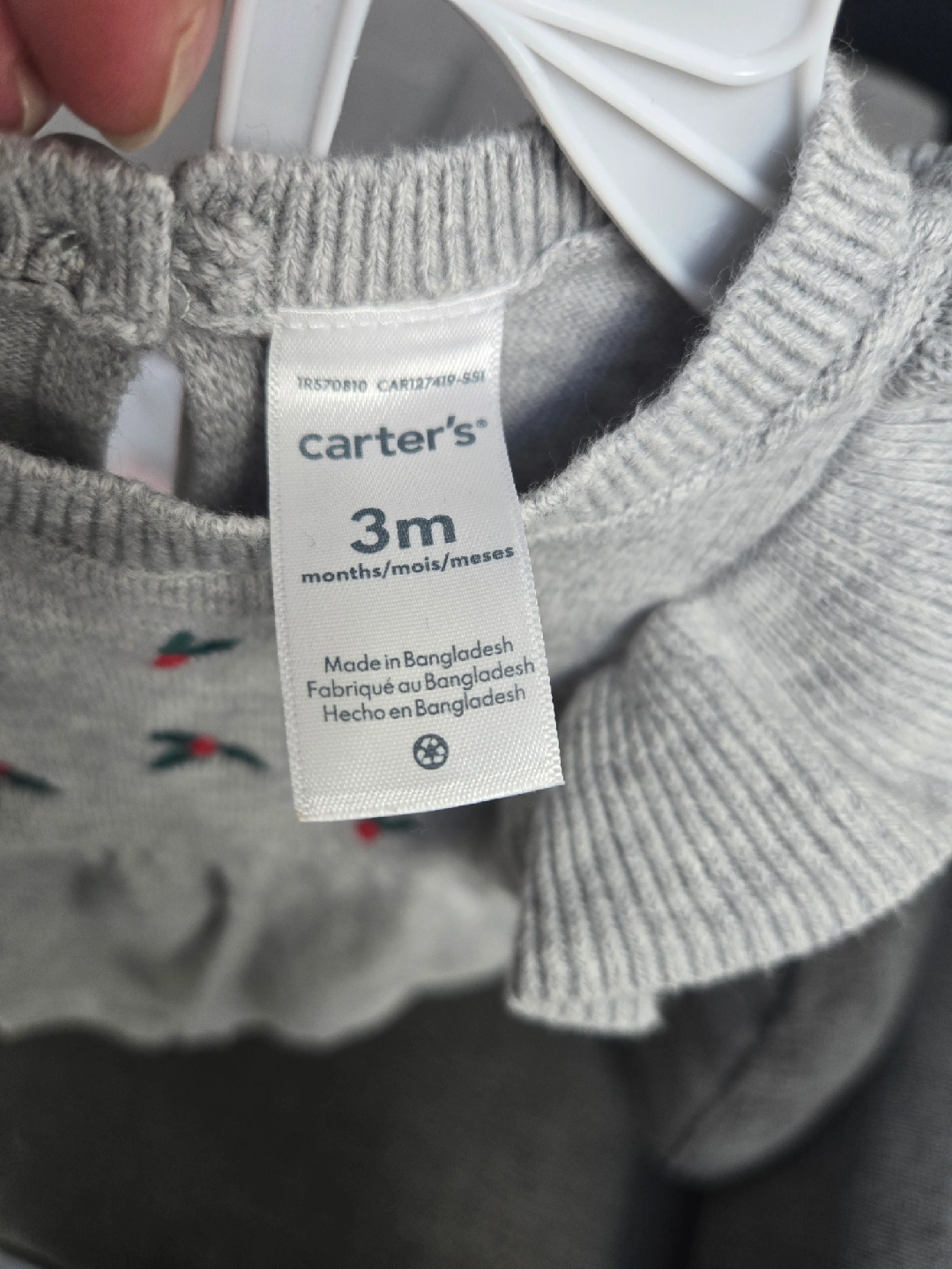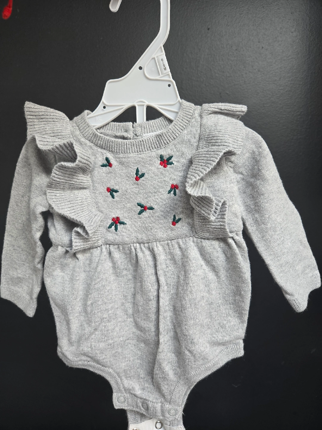 A cute Carter's baby romper in size 3 months. It's a lovely grey colour with a sweet design