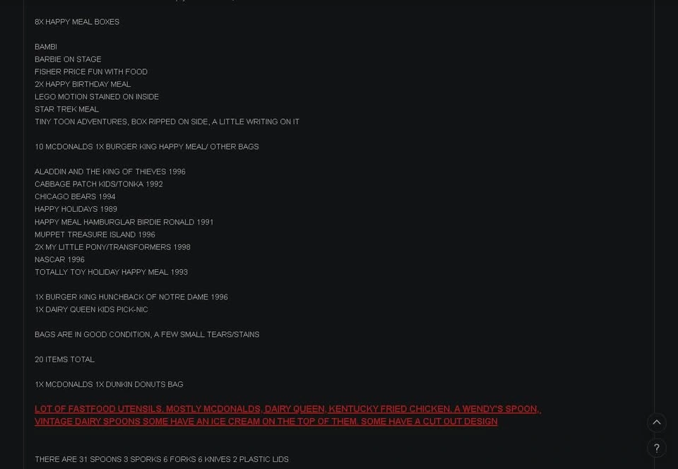 LOT OF 20 MCDONALDS HAPPY MEAL BOXES & BAGS