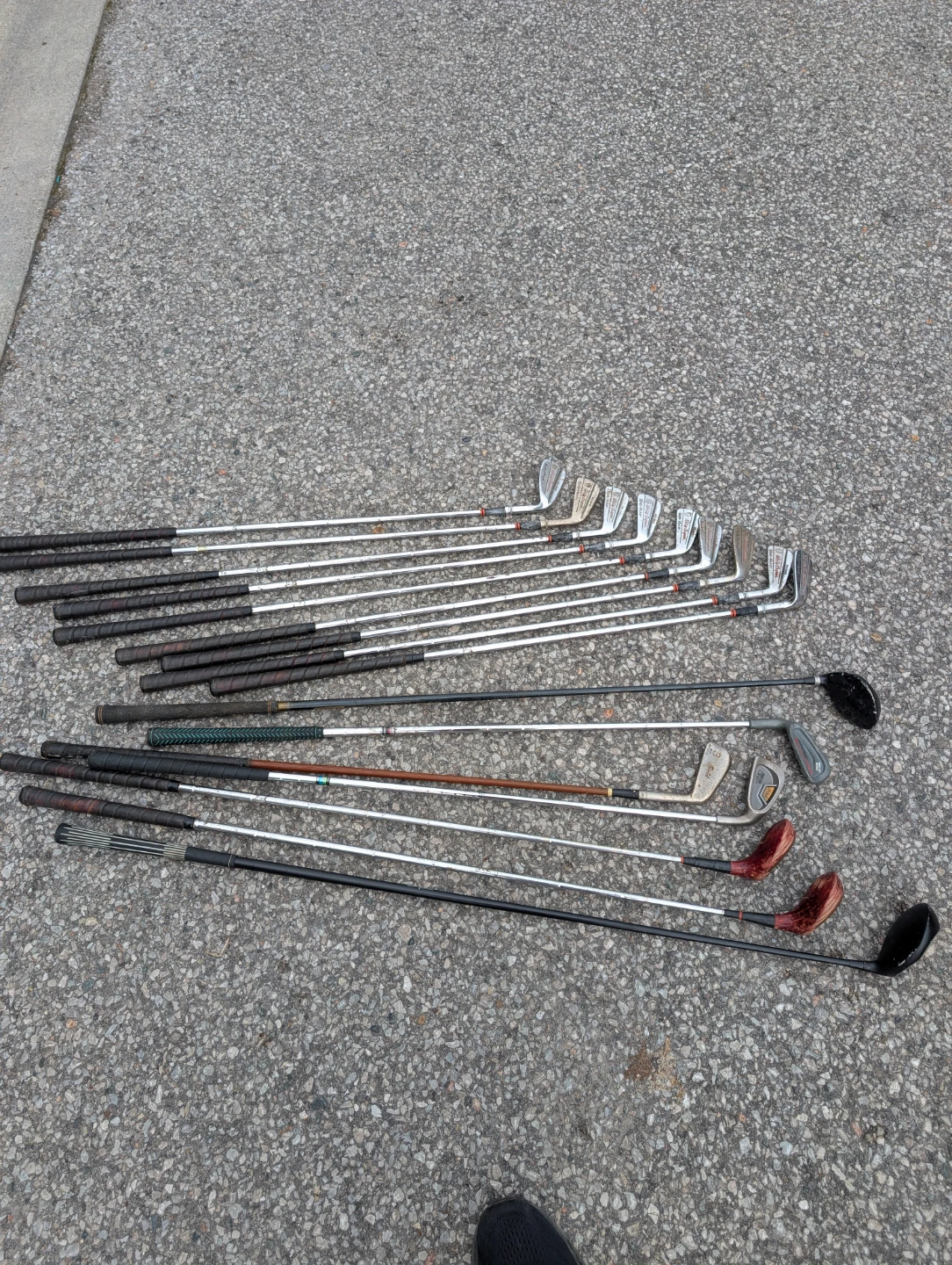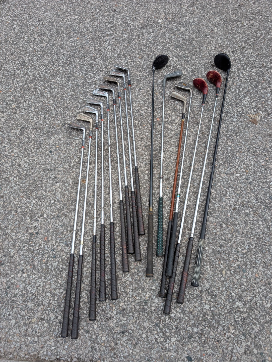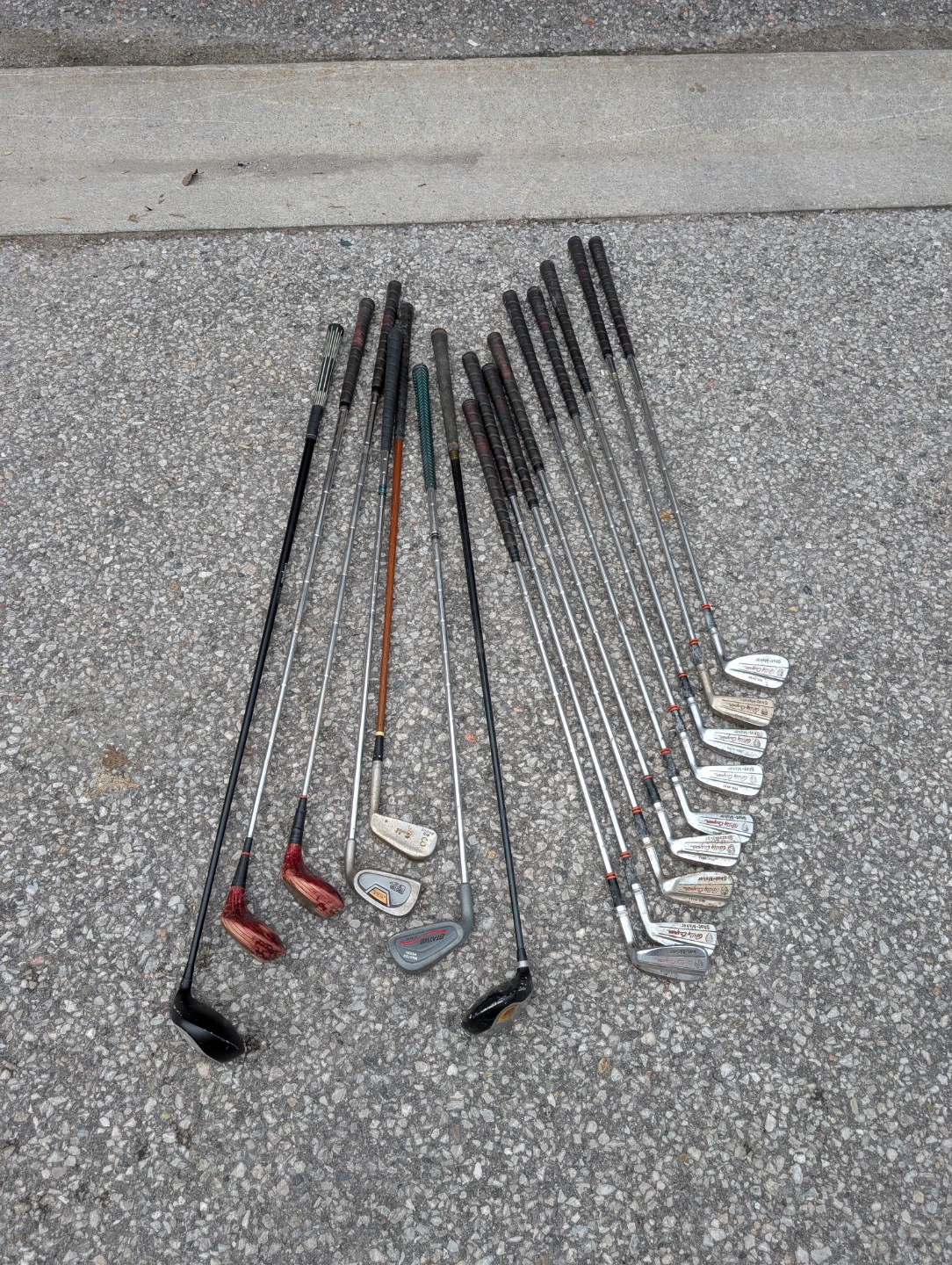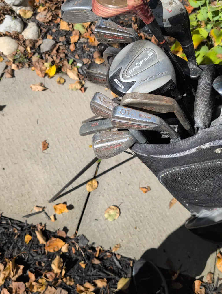 Selling a used set of golf clubs. Includes a variety of clubs and a golf bag for easy carrying. Perfect for someone looking to get into golf or upgrade their current set! They have some wear and tear, but are still usable.