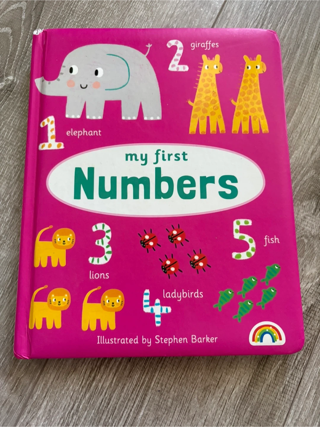 A colourful and engaging board book to help your little one learn their numbers! This book features vibrant illustrations by Stephen Barker and introduces numbers with fun animals like elephants, giraffes, lions, and more. Perfect for early learning and developing counting skills