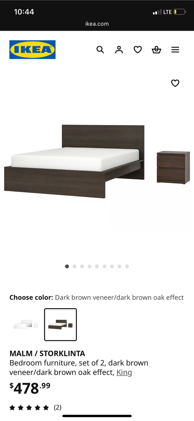 Selling an IKEA MALM / STORKLINTA bed frame in dark brown veneer/dark brown oak effect, size Queen and also Ikea mattress ! Both Purchased January 2024 .It's in great condition and ready for a new home already dismantled