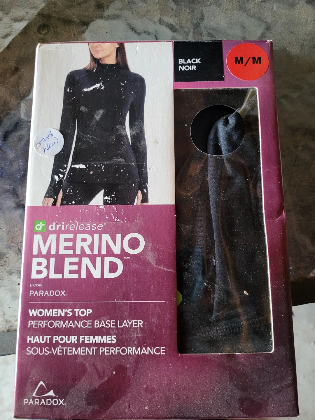 I have a brand new Paradox Women's Performance Base Layer top for sale! It's a Merino Blend in black, size M/M. This top is designed to be a performance base layer, perfect for keeping you warm and comfortable during outdoor activities