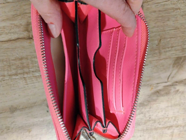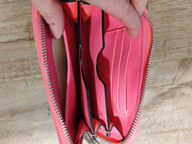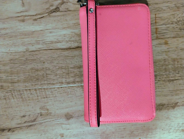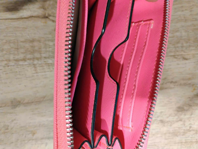 Add a pop of colour to your day with this bright pink wallet! It's in good condition and ready to keep your essentials organized. Here are some details: * Colour: Pink * Material: Faux leather * Closure: Zipper * Features: Multiple card slots, zippered coin pocket I've priced this one at $10 If the ad is up, it's still available!