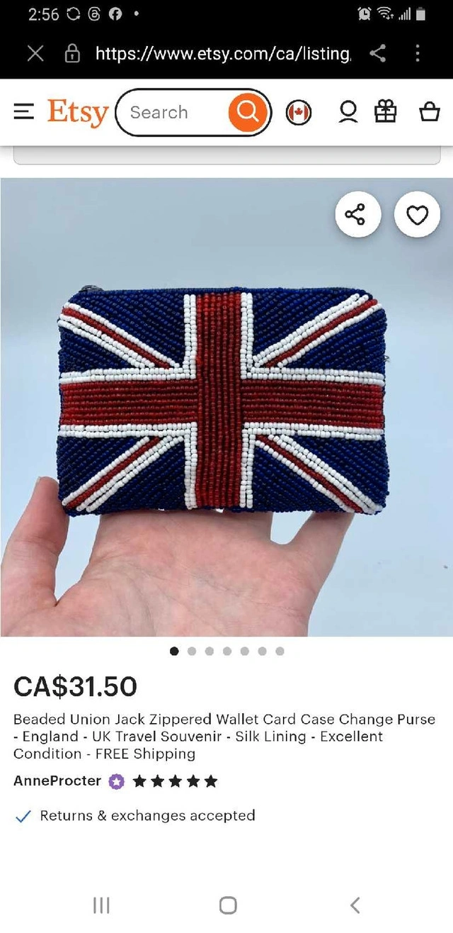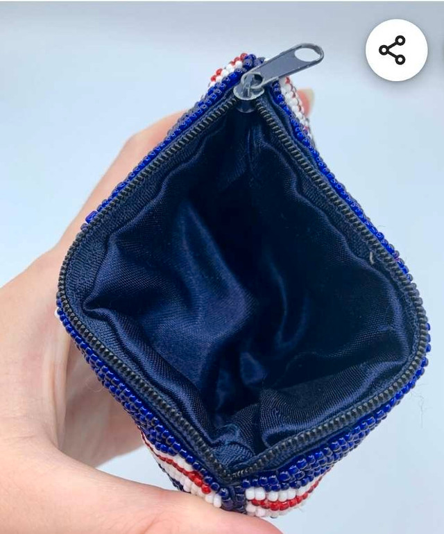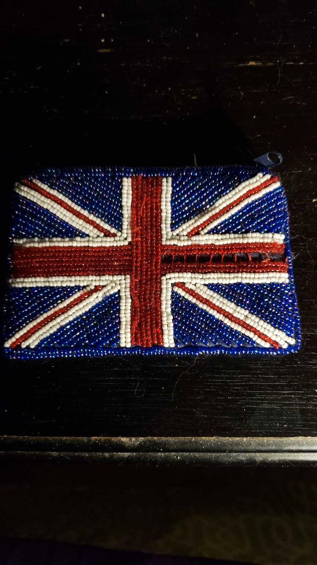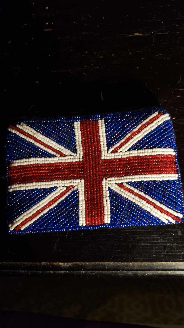Add a touch of London to your life with this used Union Jack beaded coin purse! This eye-catching accessory features intricate beadwork in the iconic British flag design. It's perfect for carrying your coins, cards, or other small essentials. * Features: Zipper closure, fully lined interior * Design: Beaded Union Jack flag * Dimensions: Compact size, easy to carry Spruce up your style with a dash of British flair! Based on similar items I've seen on Kijiji and Etsy, I'm pricing this unique coin purse at $20 CAD. A few little beads are missing, but could be replaced. If you see this ad, it's still available!