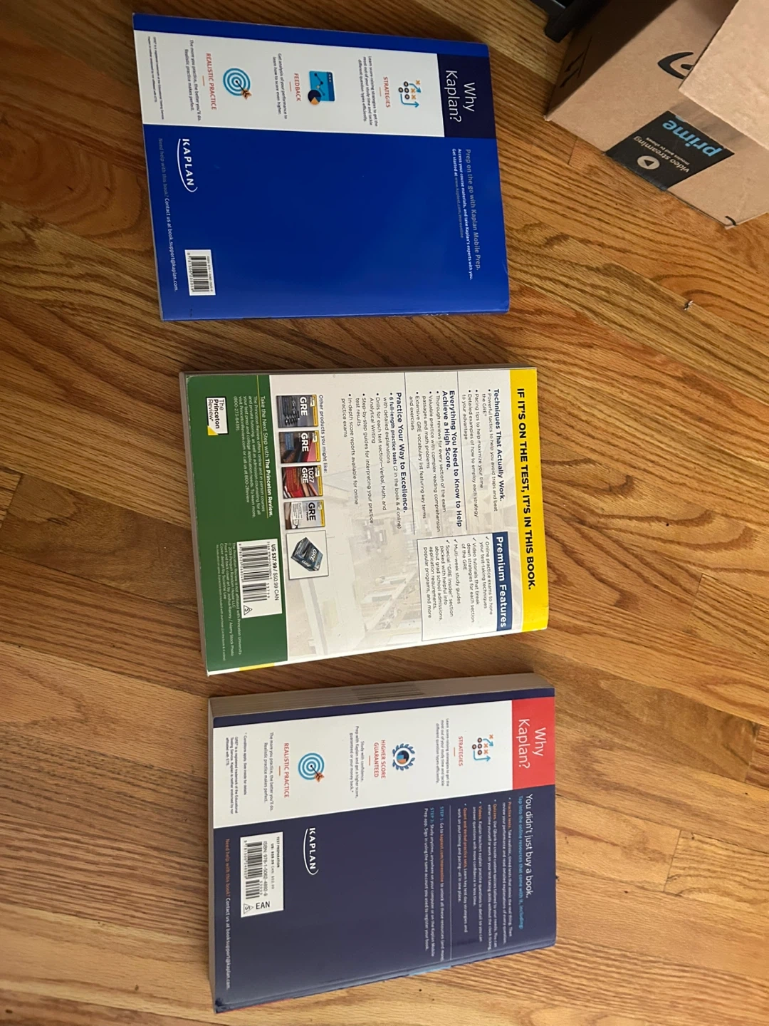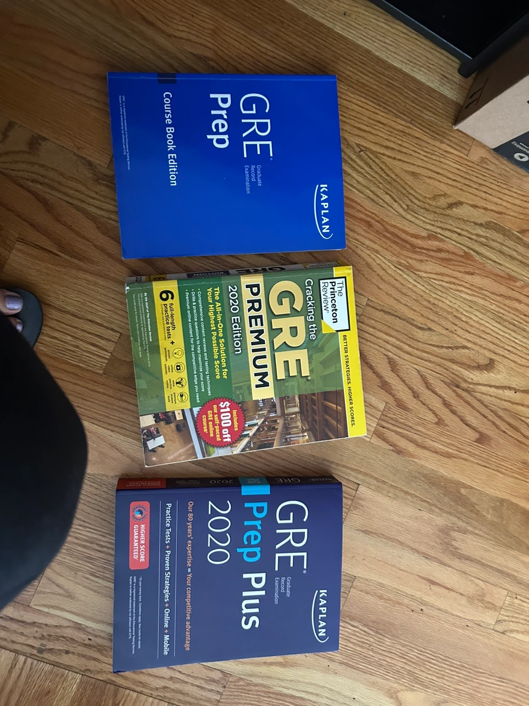 Selling a set of GRE prep books from Kaplan and Princeton Review. Includes Kaplan GRE Prep Plus 2020, Kaplan GRE Course Book Edition, and The Princeton Review Cracking the GRE Premium 2020 Edition 5 each