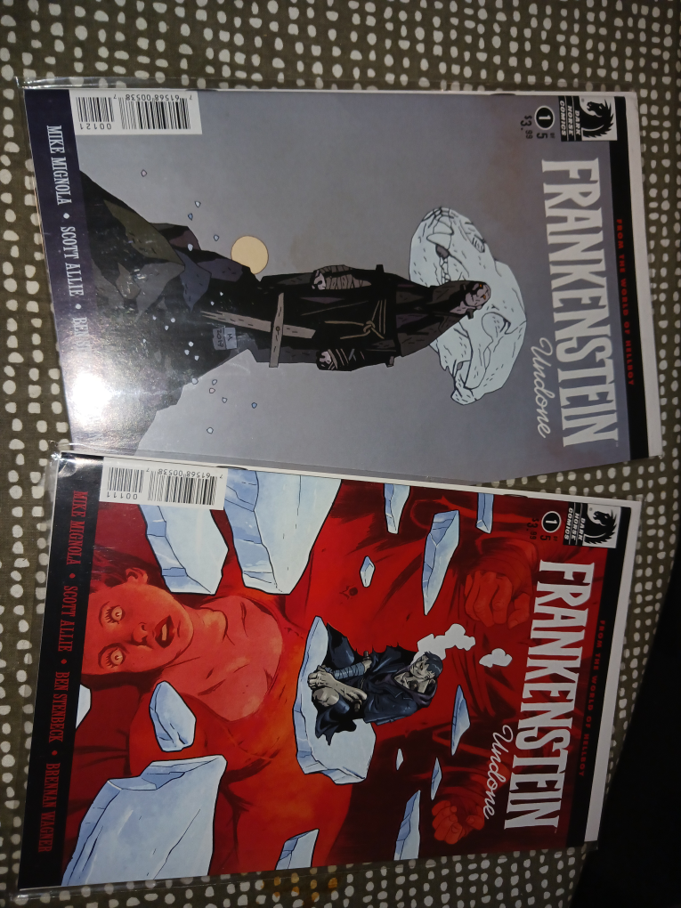 Two comic books from the series 'Frankenstein Undone' are up for grabs! Published by Dark Horse Comics, these are issue number 1. Authors include Mike Mignola, Scott Allie, Ben Stenbeck, and Brennan Wagner. Originally priced at $3.99 each