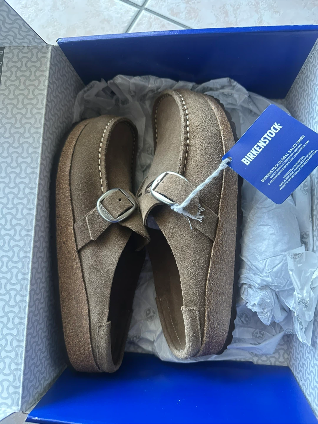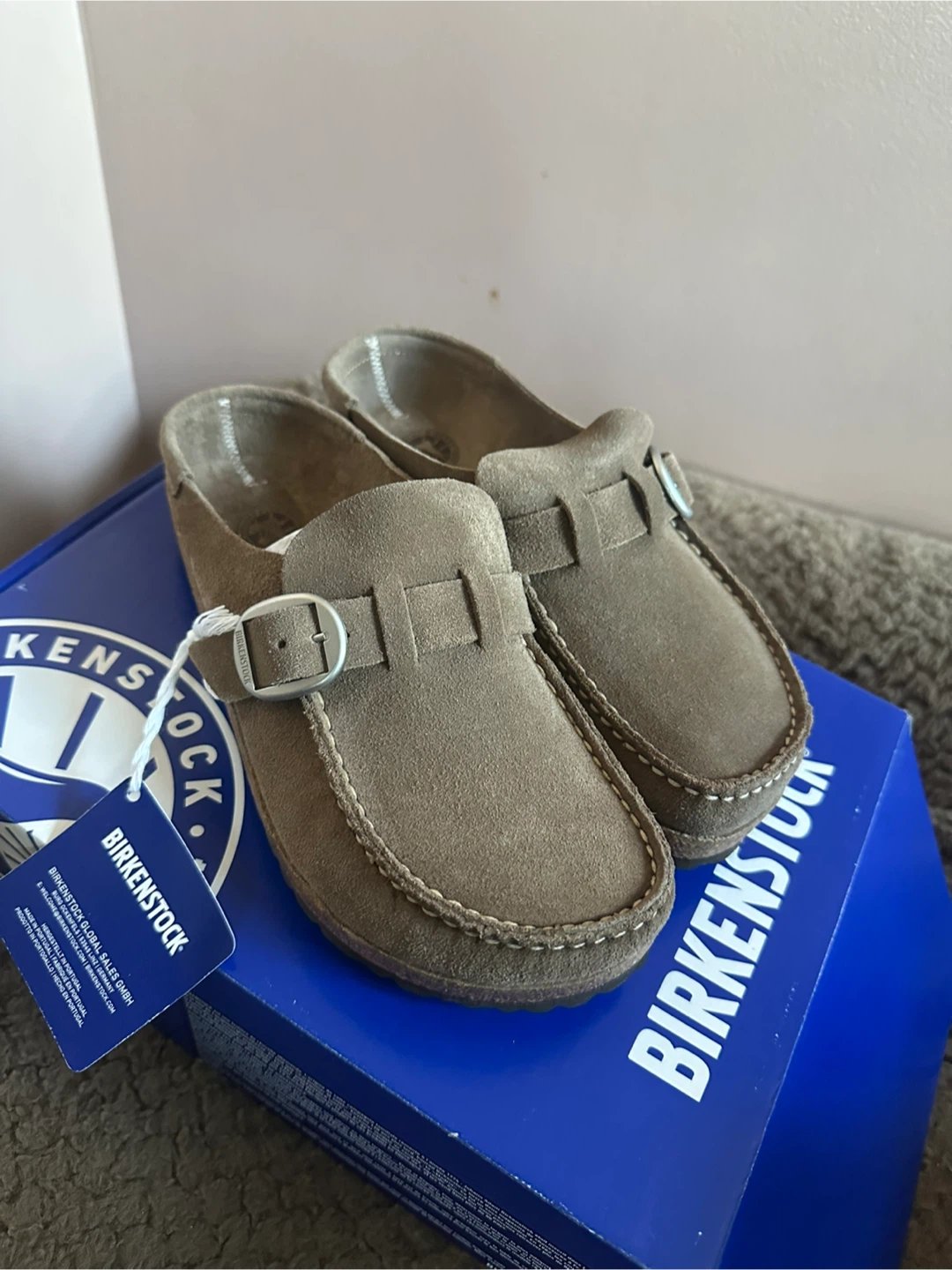 Selling a brand new pair of Birkenstock Buckley Shearling clogs in size 38! They come with the original box. These are super comfy and stylish for year-round wear