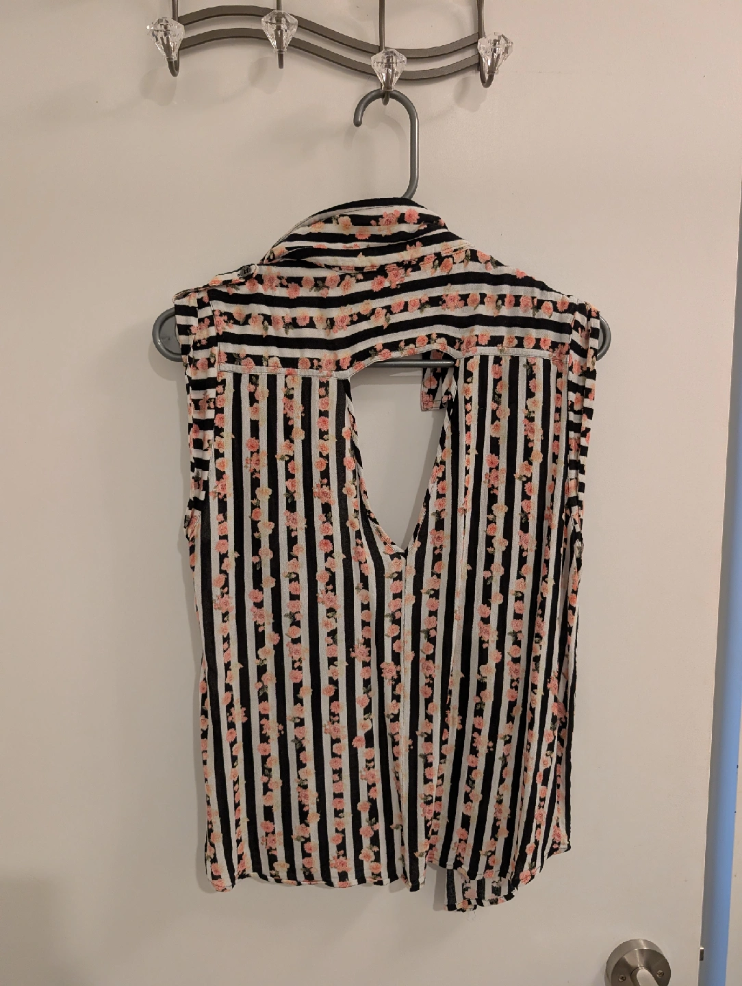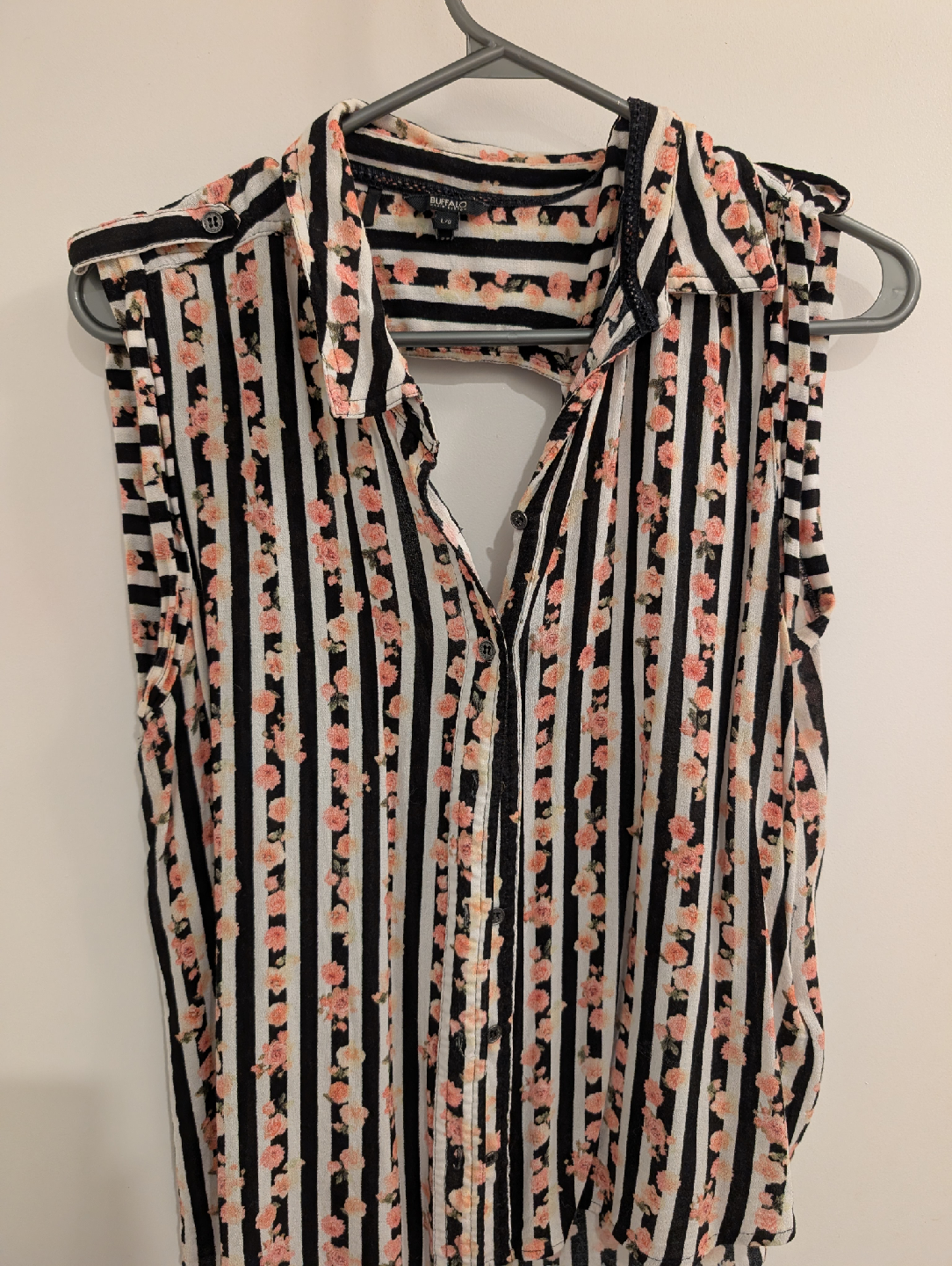 Buffalo Striped Floral Sleeveless Blouse - Size L