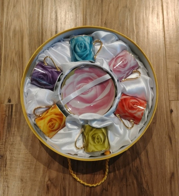 Vintage Classic Coffee & Tea Espresso Set Roses Valentine's Day 6 Multicolor Set