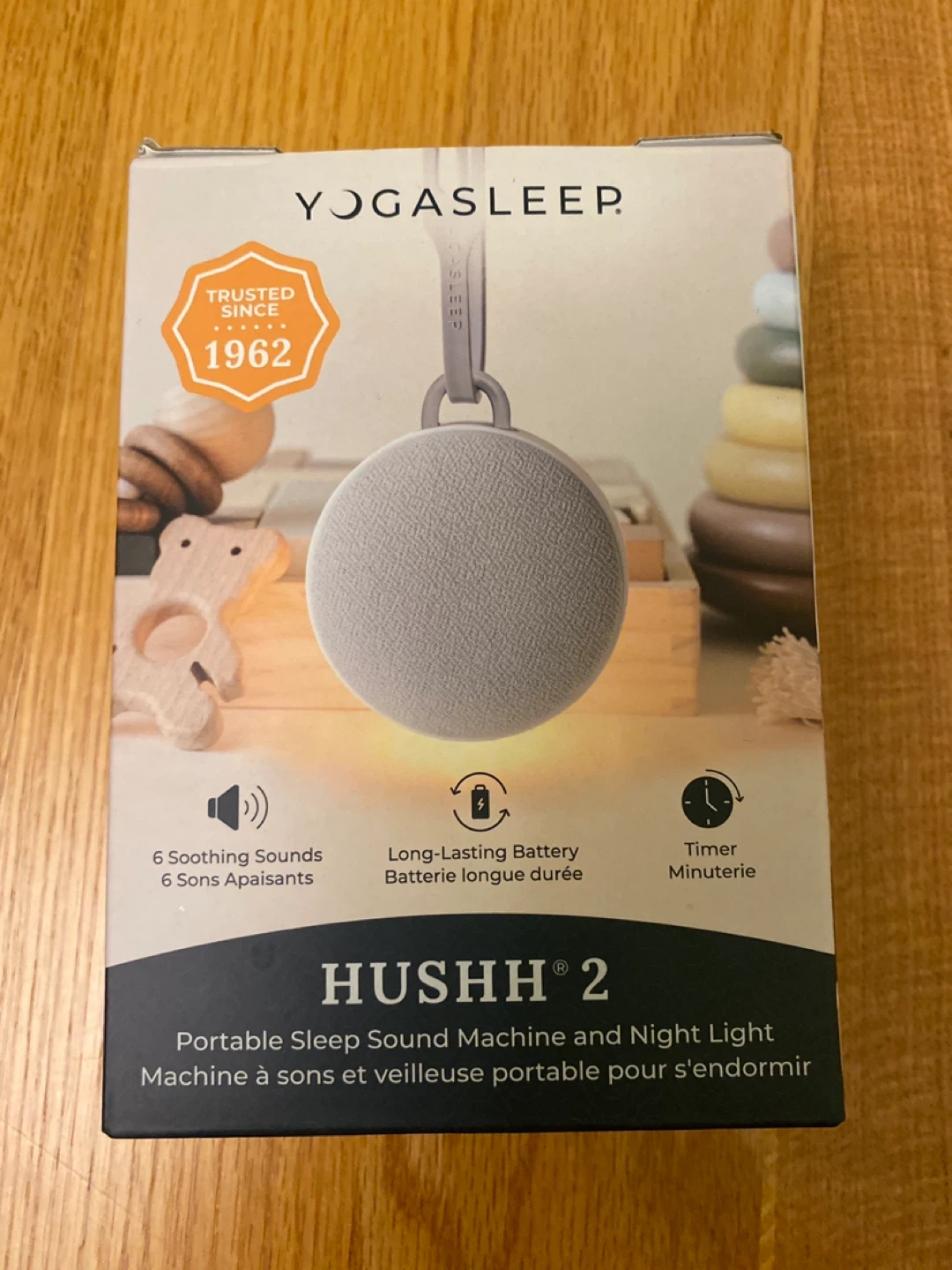 Selling a Yogasleep Hushh 2 portable sleep sound machine and night light! It's perfect for lulling babies into deep, peaceful sleep at home or on the go. It features 6 soothing sounds, a long-lasting battery, and a timer. The backlit buttons are easy to see and operate in the dark, and the child lock keeps curious hands from changing settings. It's heavy-duty, baby-proof, and built to last