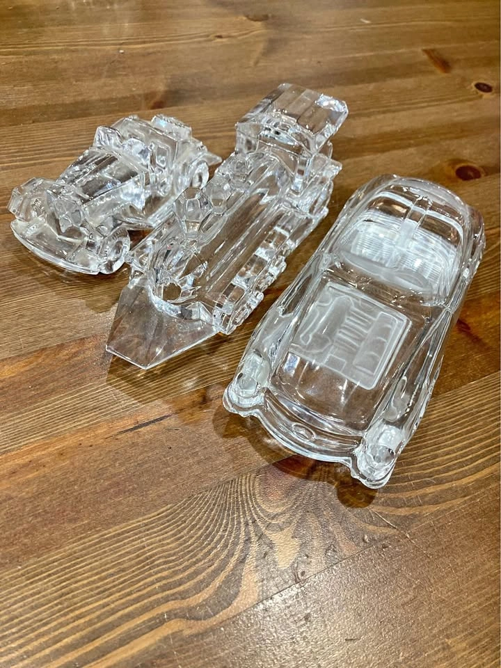 Vintage Crystal Glass Cars & Train Collectible Set – 3 Pieces