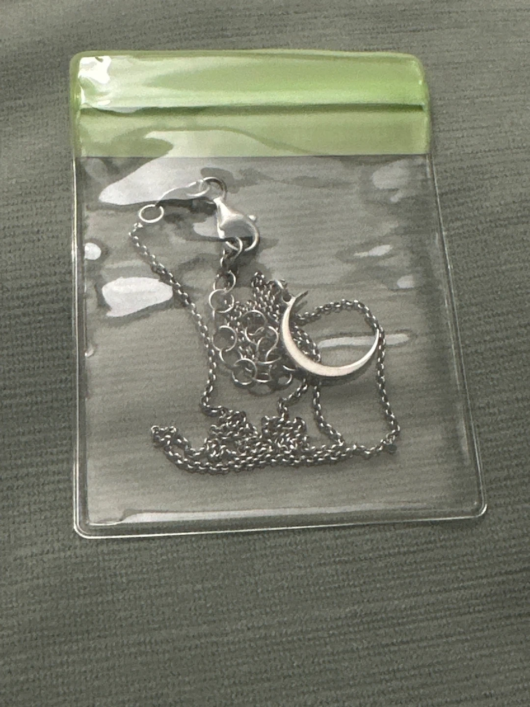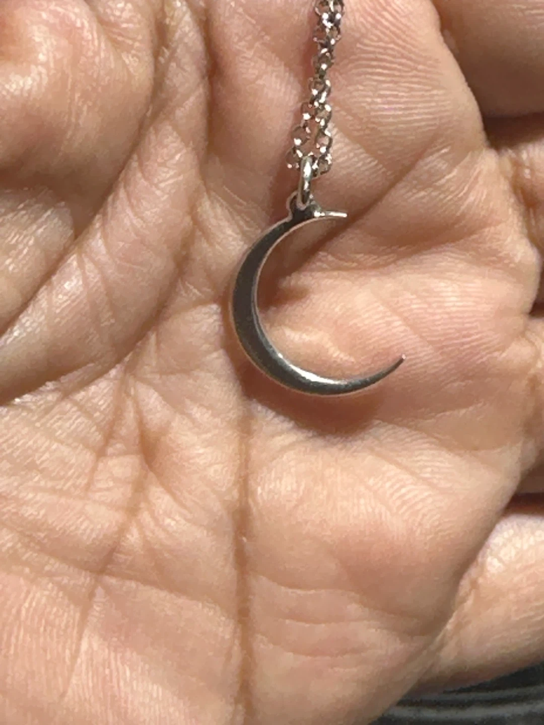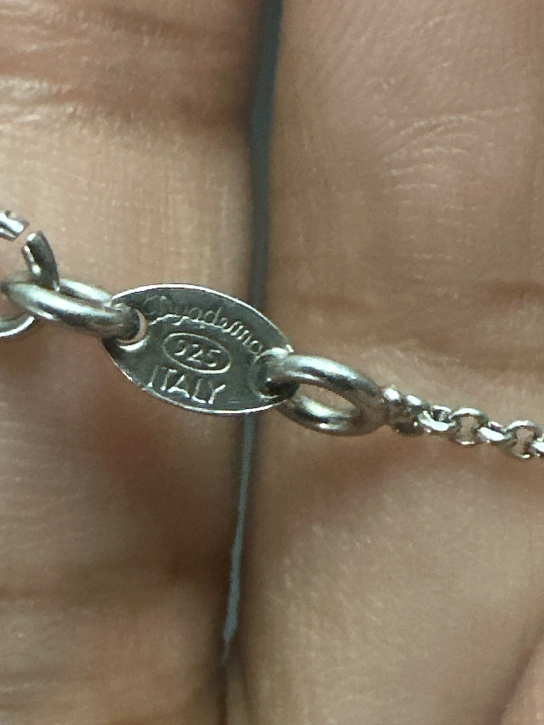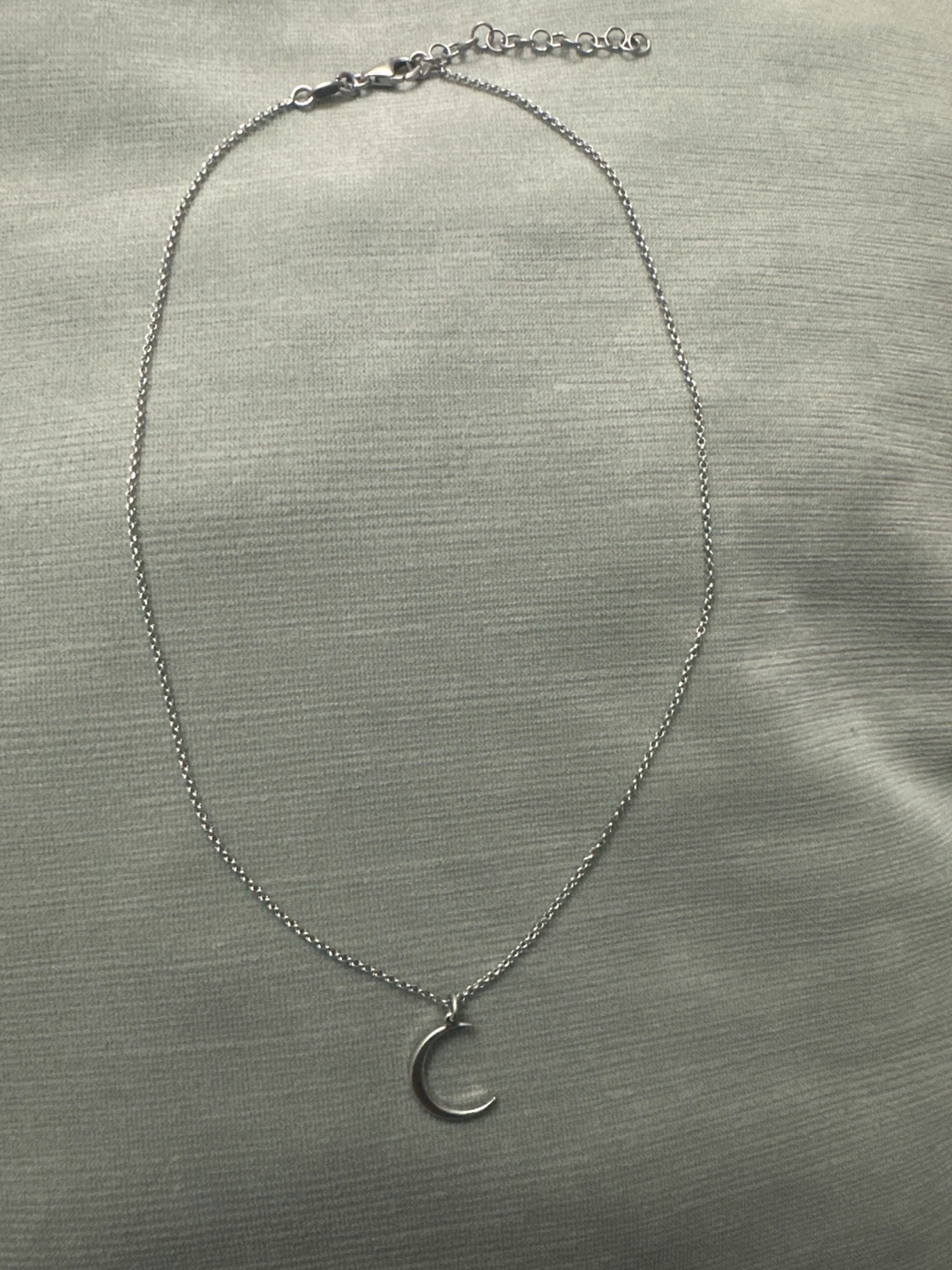 Selling a lovely 925 silver necklace with a crescent moon pendant. The clasp is also marked with '925', indicating the silver quality. It's an dyadema brand necklace, made in Italy. A simple and elegant piece to add to your collection