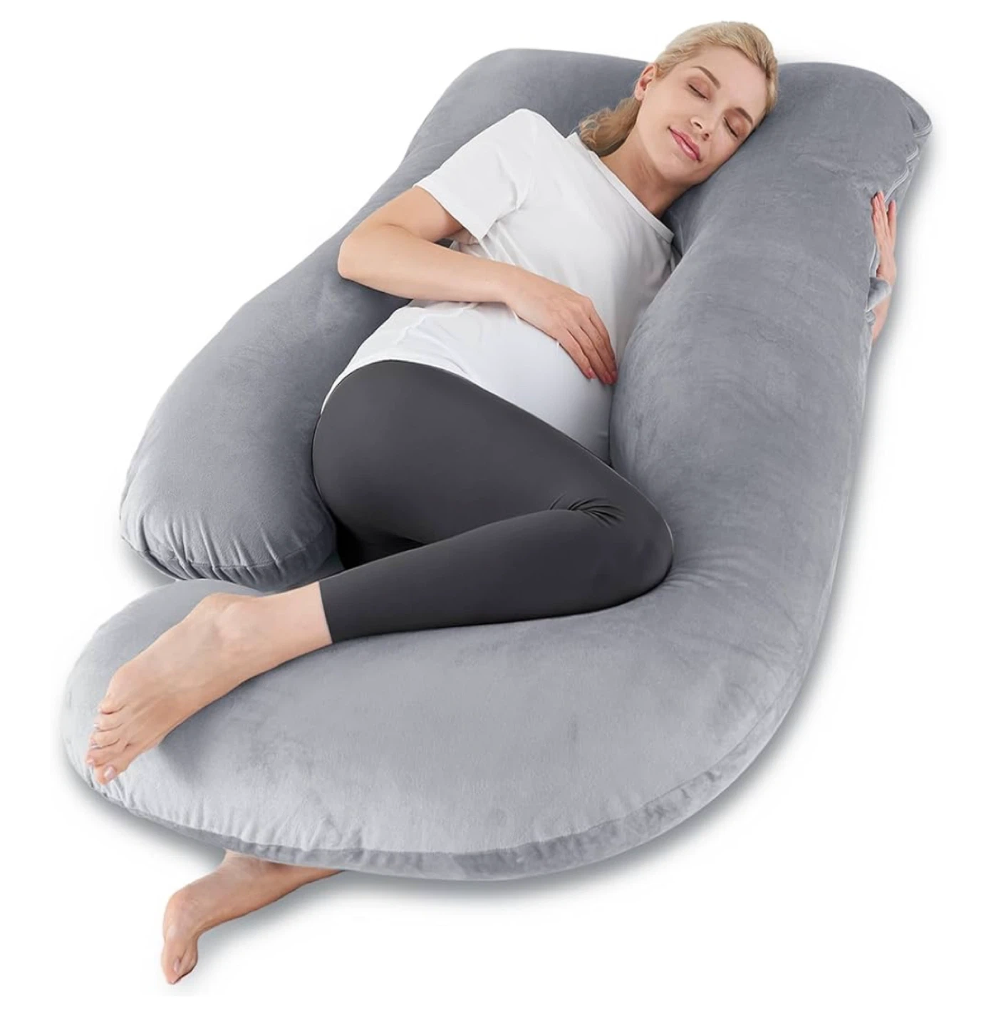 This is a pregnancy pillow in grey. Originally bought for $39.99 on Amazon plus tax = $45.20. It's designed to provide support and comfort during pregnancy for sleeping. It’s in great condition and ready for a new home!
