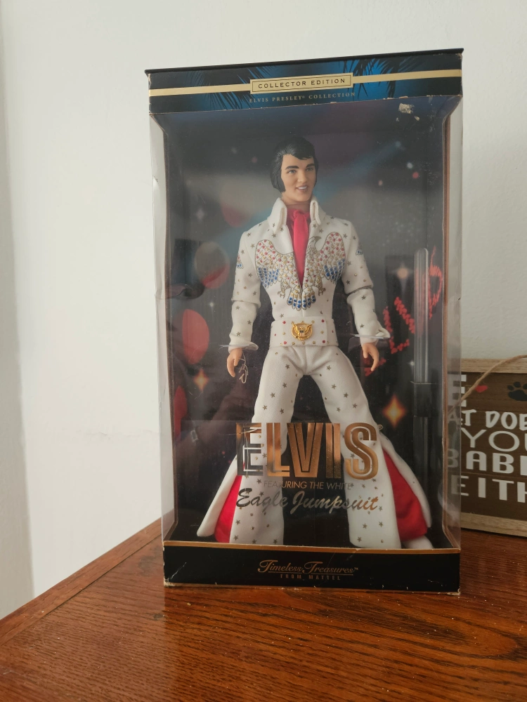Selling a Mattel Elvis Presley Collector Edition doll, featuring the White Eagle Jumpsuit. This is a Timeless Treasures doll from Mattel. Perfect for any Elvis fan or doll collector. Only available for pickup only. Cash only accepted.