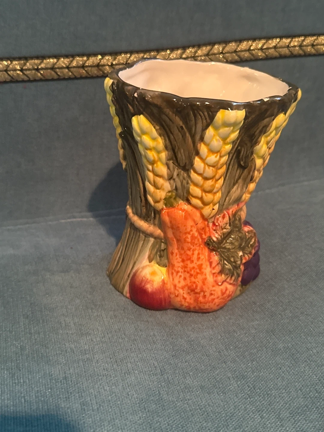 Celery display vase, a vintage Fitz and Floyd Harvest Bounty vase. It features a lovely design with wheat, pumpkins, grapes, and apples. Perfect for adding a touch of autumn charm to your home decor!