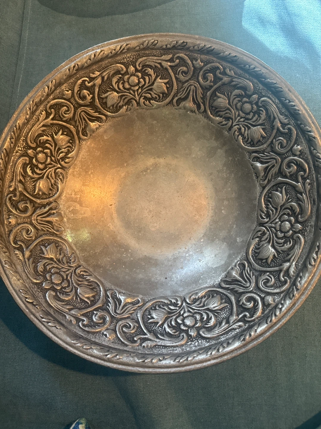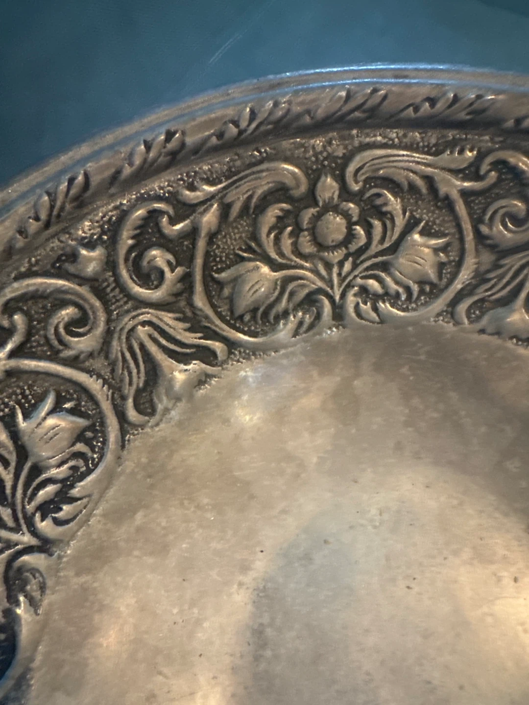 Selling a vintage Meriden Britannia Co. silver plated bowl. It has a beautiful floral design around the rim. Perfect for adding a touch of elegance to your home decor