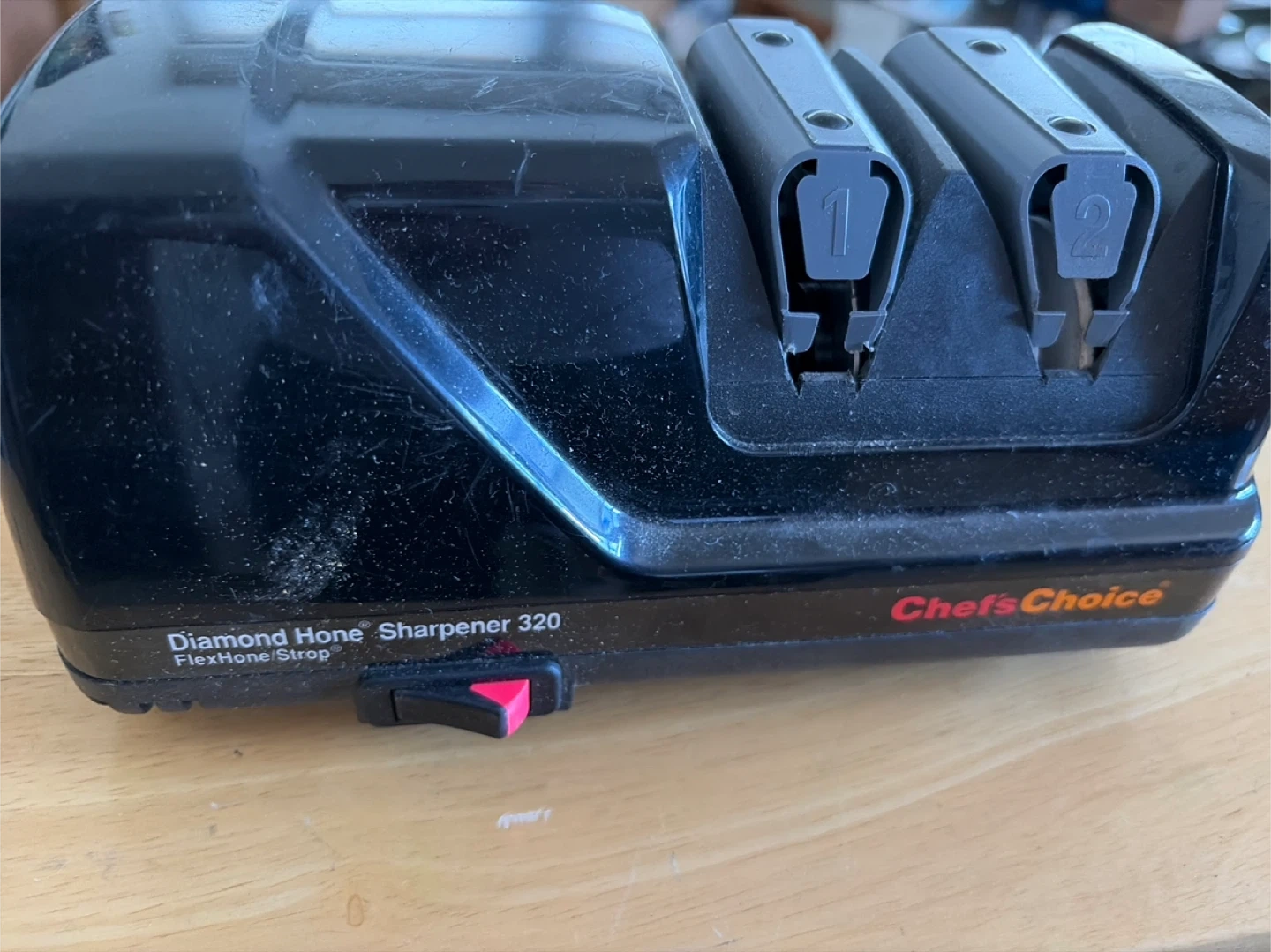 Selling a Chef's Choice Diamond Hone Sharpener 320. It has a FlexHone/Strop feature and is in used condition.