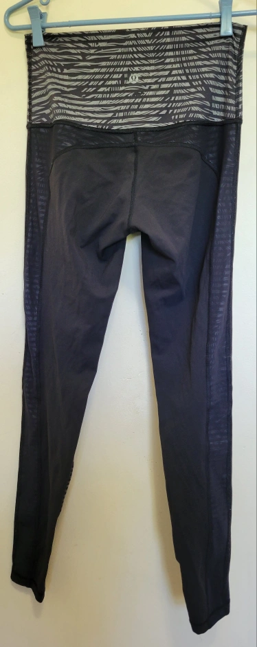 Selling a pair of Lululemon leggings in great condition! They feature a stylish black and grey patterned design. Perfect for workouts or everyday wear. Size 6 but can't seem to find it again lol!