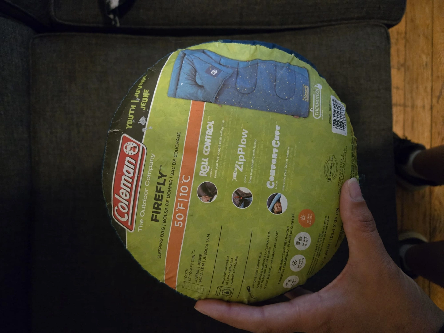 Selling a Coleman Firefly youth sleeping bag! It's in great shape and ready for your little one's next adventure. The bag is designed for temperatures as low as 10°C (50°F). It features Roll Control and a Comfort Cuff for added comfort. It's suitable for heights up to 1.5m