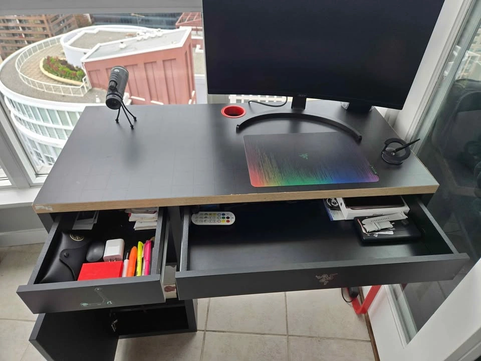 Air ventilates effectively around your computer or other equipment because of an opening in the back panel.