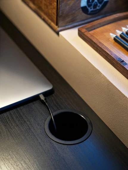 It’s easy to keep sockets and cables out of sight but close at hand with the cable outlet at the back.