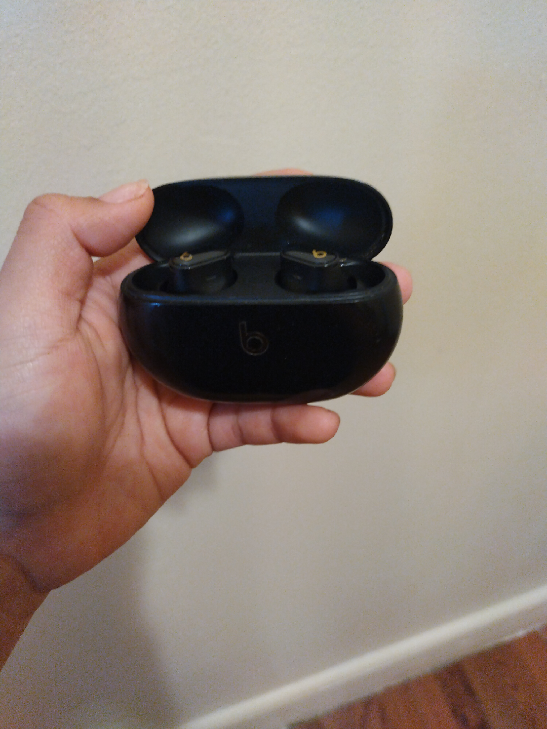 Selling a pair of used black Beats Studio Buds. They are in good condition and come with the charging case.