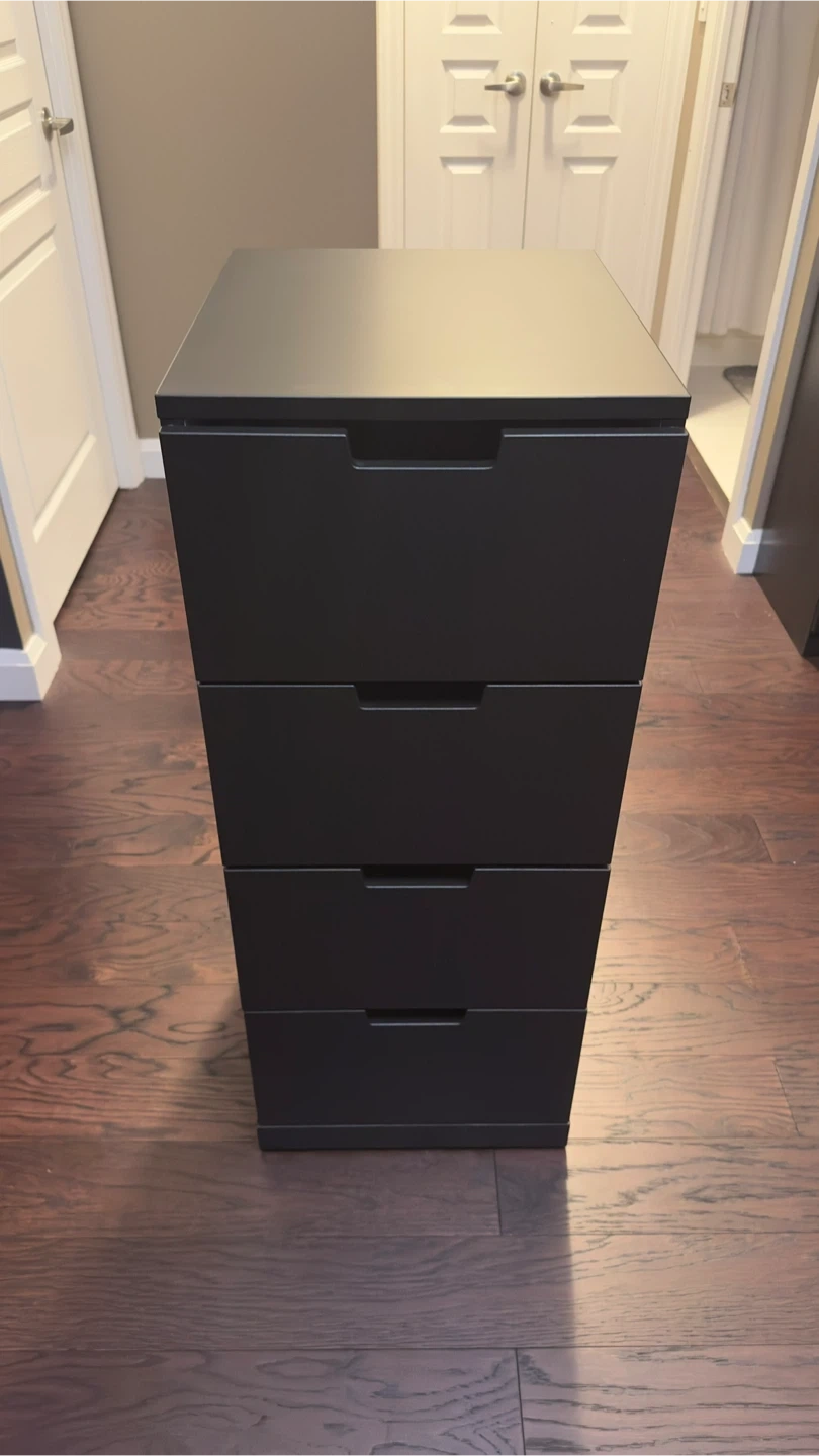 Selling a black IKEA ALEX four-drawer storage unit. It's in great shape and ready to organize your space! It's perfect for bedrooms, offices, or any room needing a little extra storage.