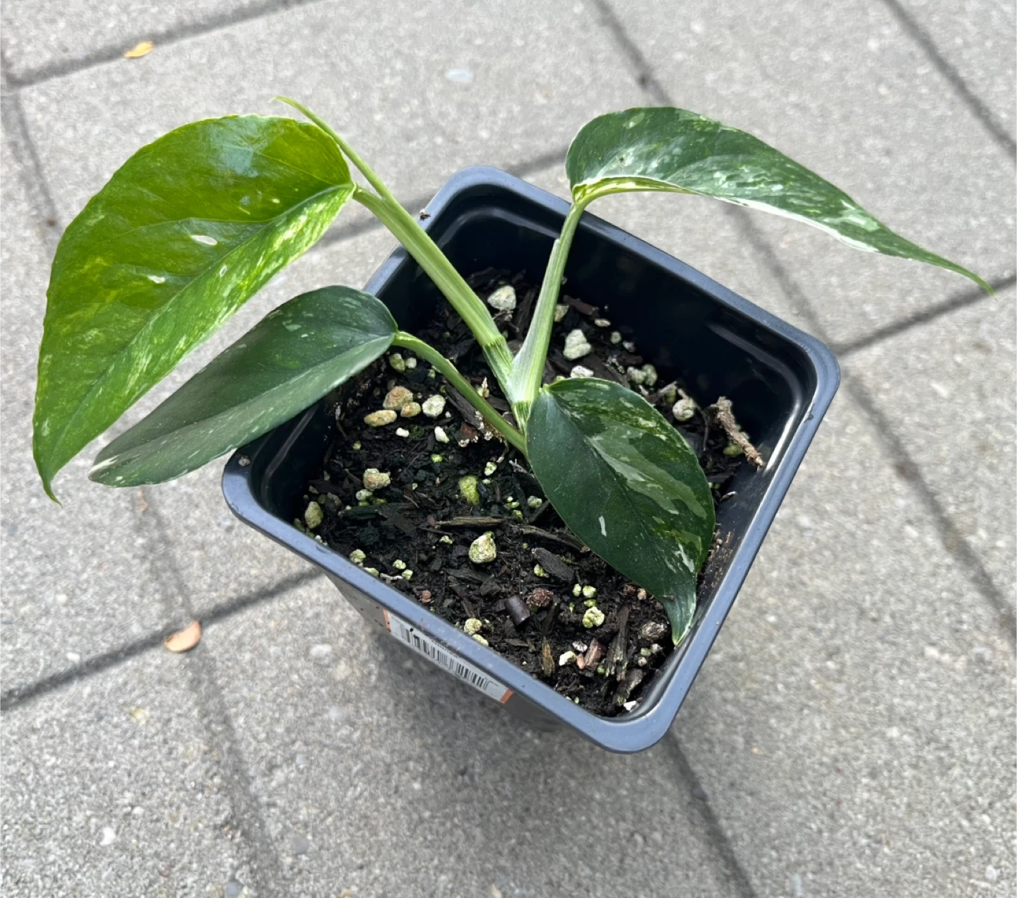 Well rooted Epipremnum Pinnatum Albo in a small pot.
