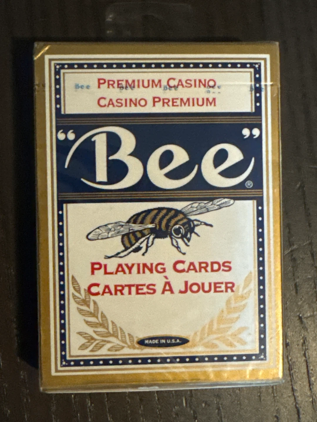 I'm selling a brand new, sealed deck of Bee Premium Casino Playing Cards! These cards are known for their quality and durability, perfect for poker night or any card game. They are still in their original packaging.