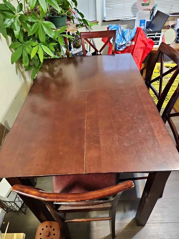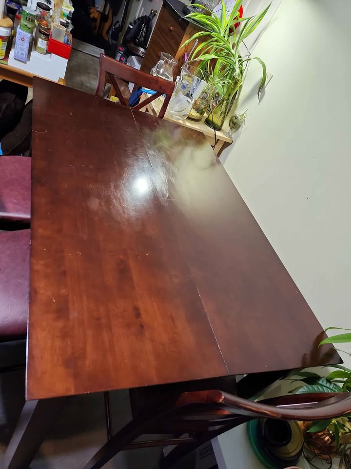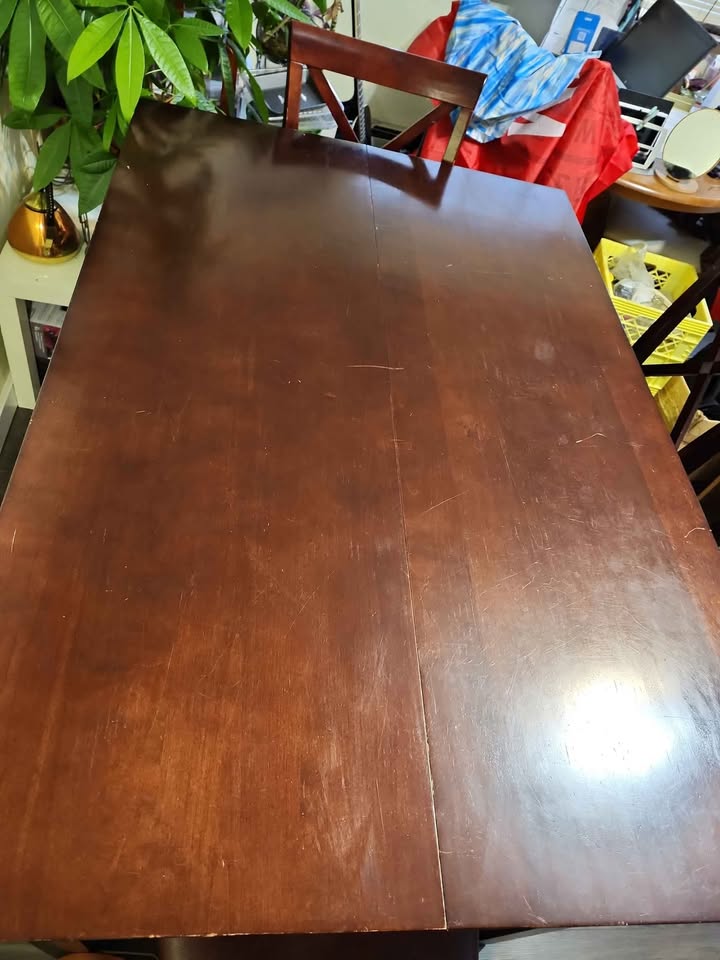 High quality solid wood table, sturdy and in good condition. The size is L54"(137CM) * W36"(92CM) * H36"(92CM). This is a high bar table at 36' H.