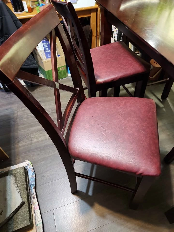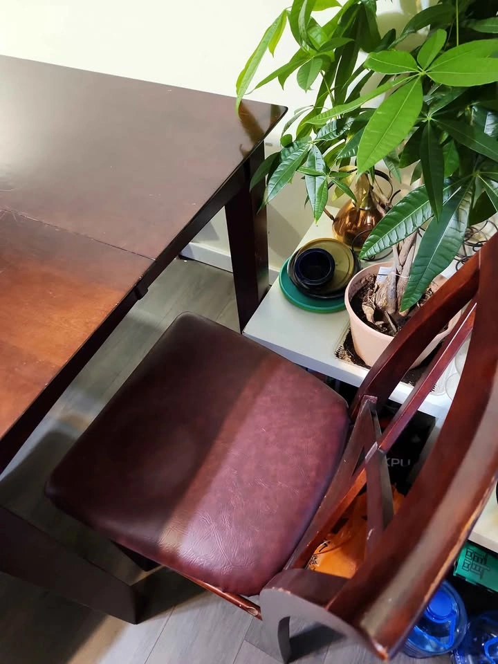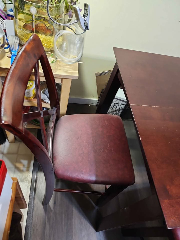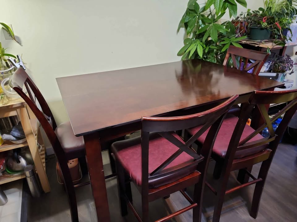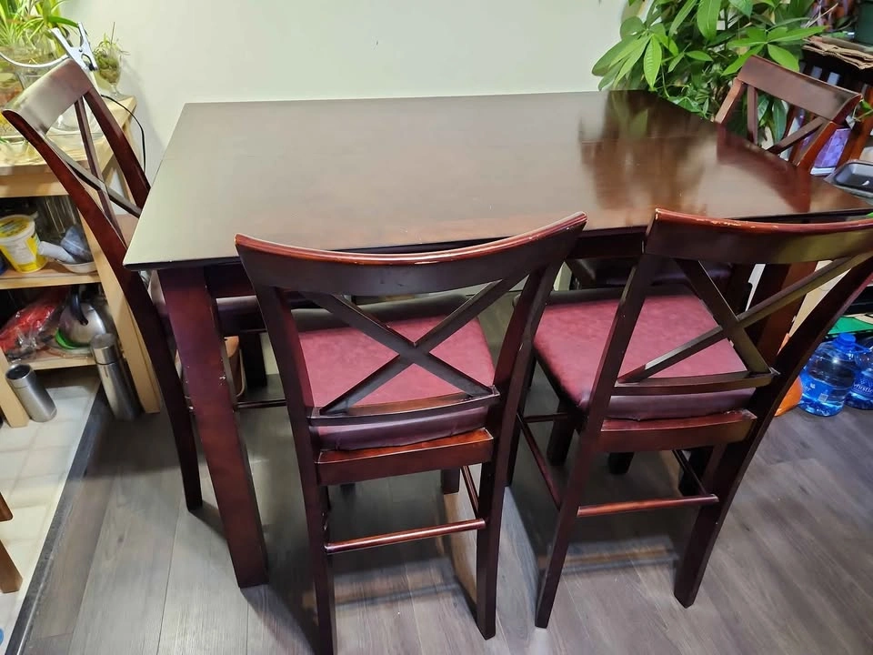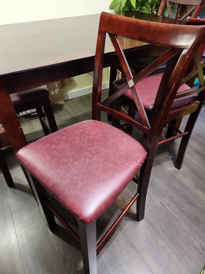 Solid wood high tablet and leather chairs