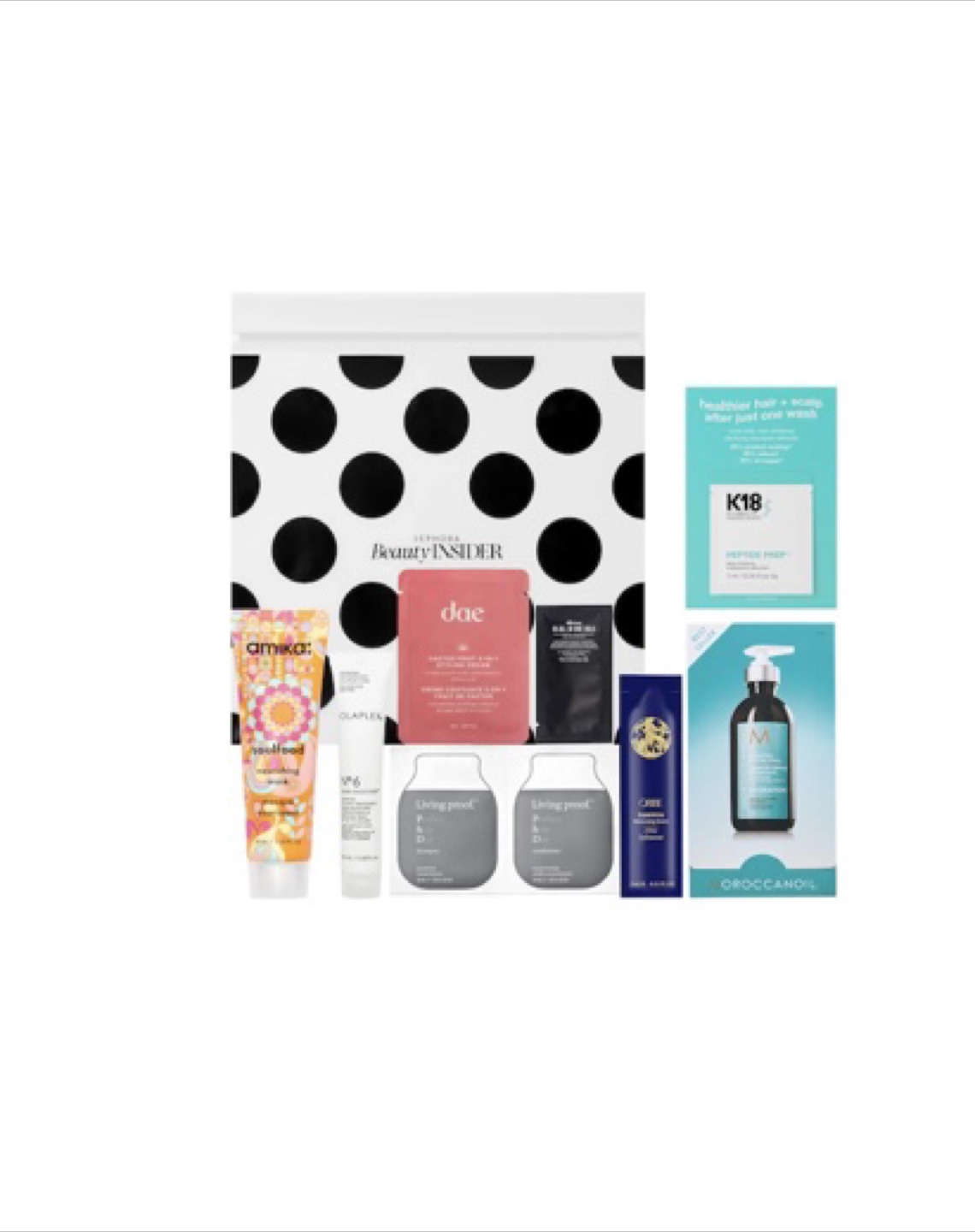 Selling a new Sephora Beauty Insider hair care set! This set includes a variety of popular hair care products from brands like Amika, Olaplex, Dae, Living Proof, K18, Oribe, and Moroccanoil. Perfect for trying out new products or travel