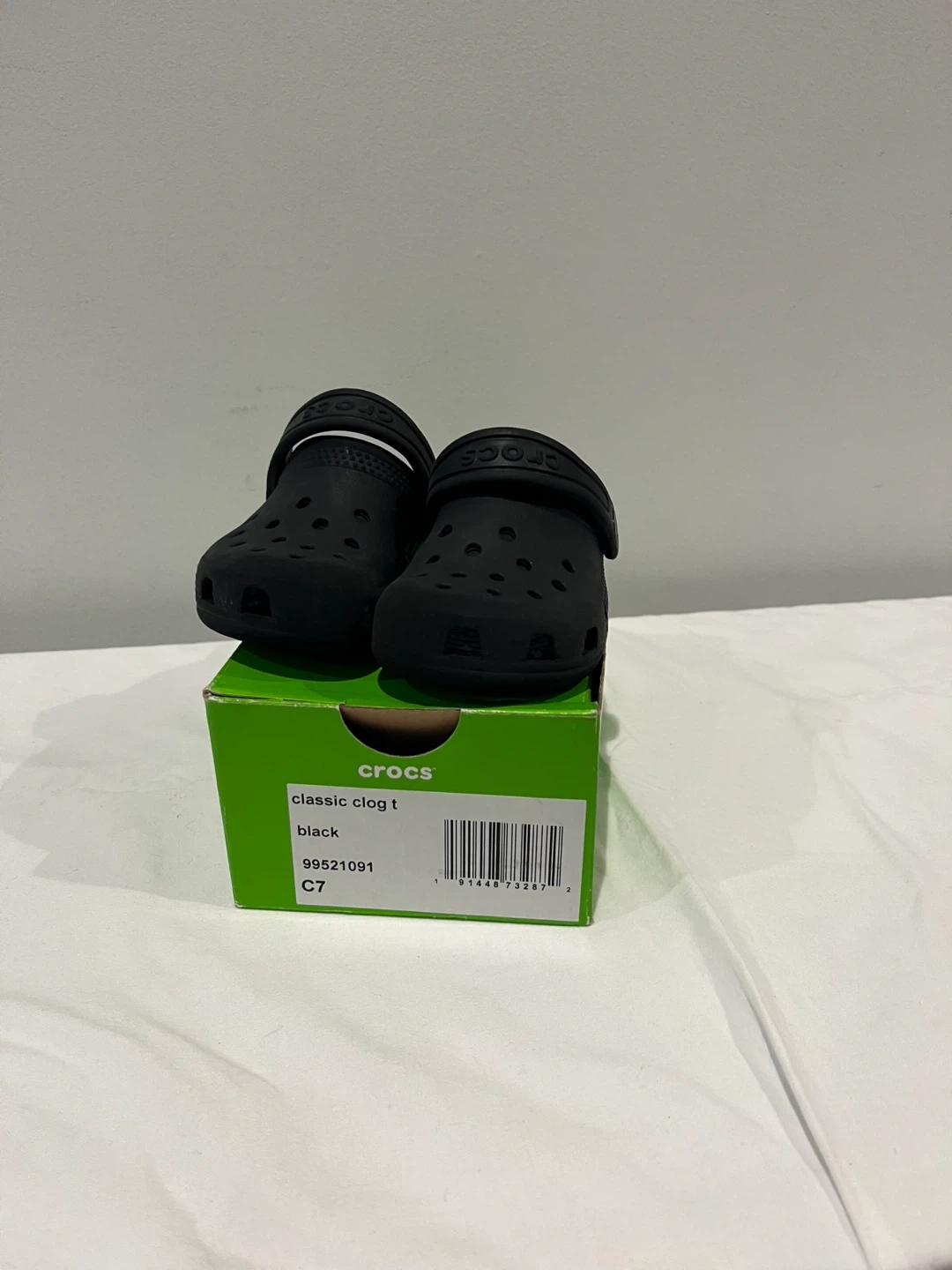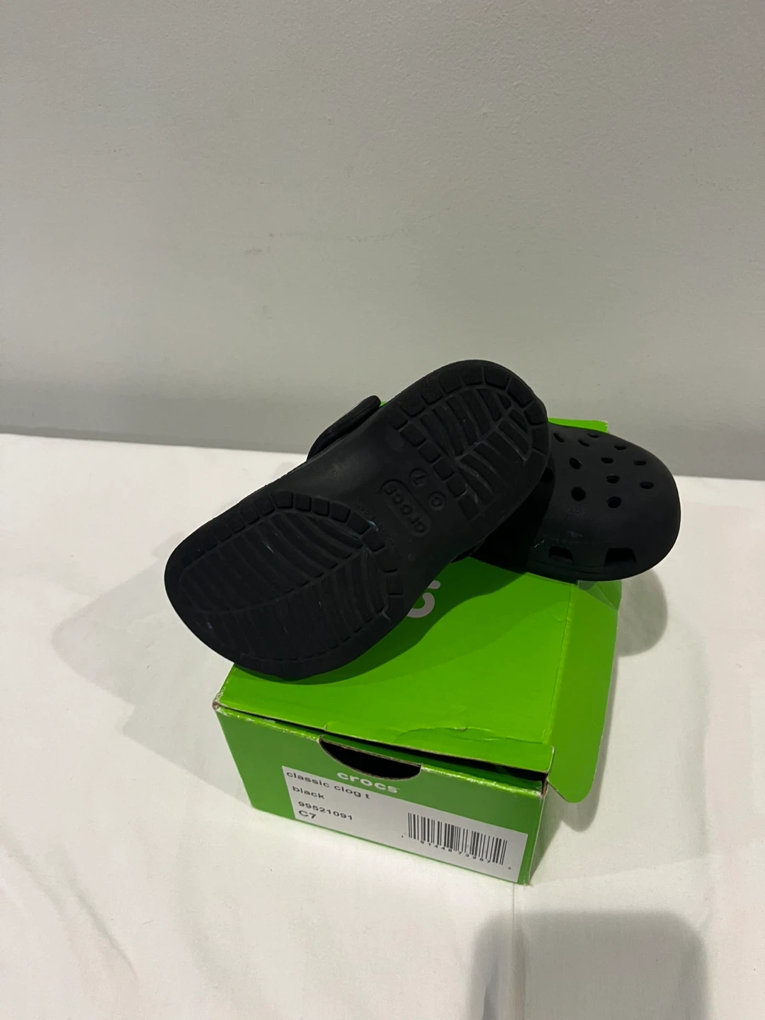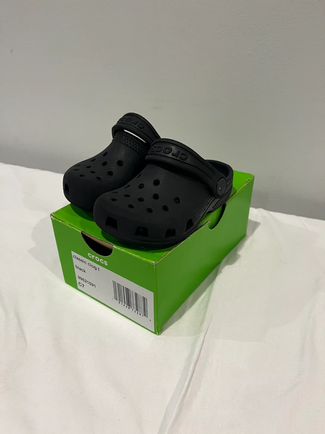 Selling a pair of Crocs Classic Clog T in black, size C7. They come with the original box. Perfect for your little one!