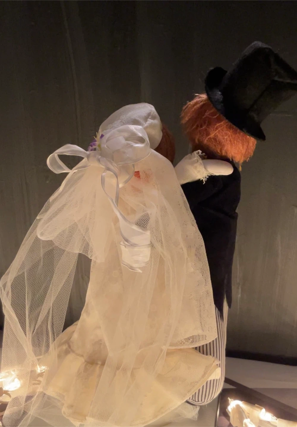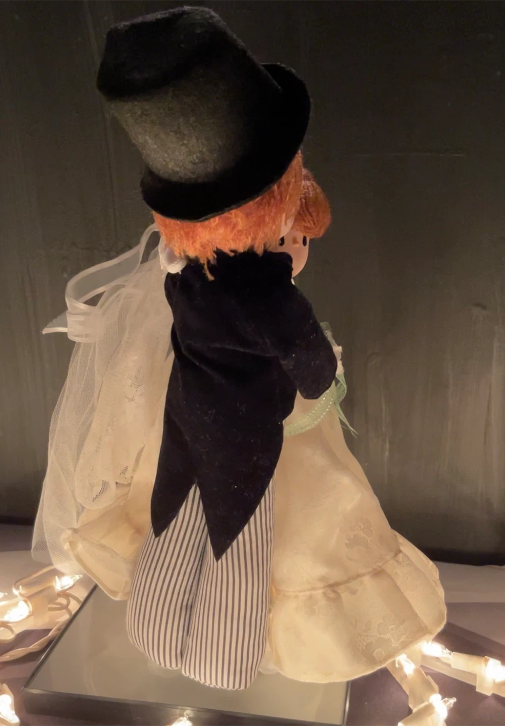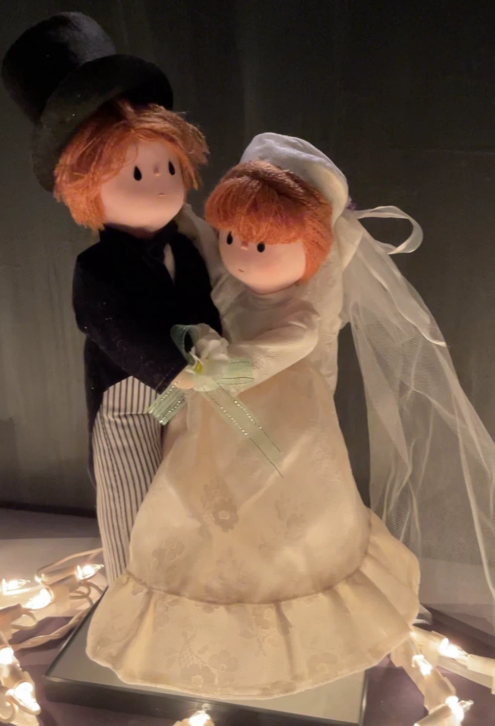vintage musical wedding doll set by Russ, often used as a cake topper, that plays