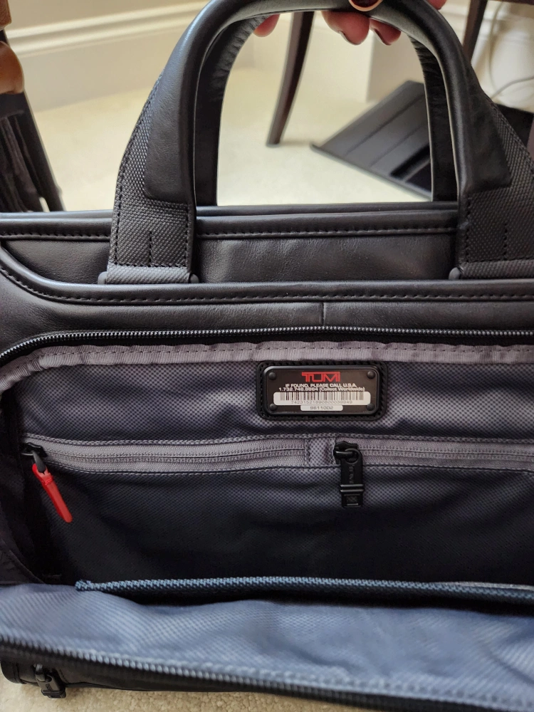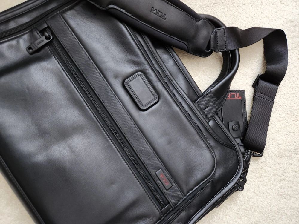 Similar *non-leather* model currently sells for $700+ on Tumi website.