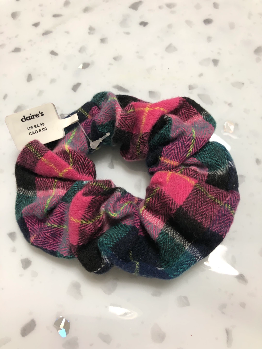 Selling a cute plaid scrunchie from Claire's! It's in great condition and has a fun, colourful pattern. Originally bought for $6.00 CAD