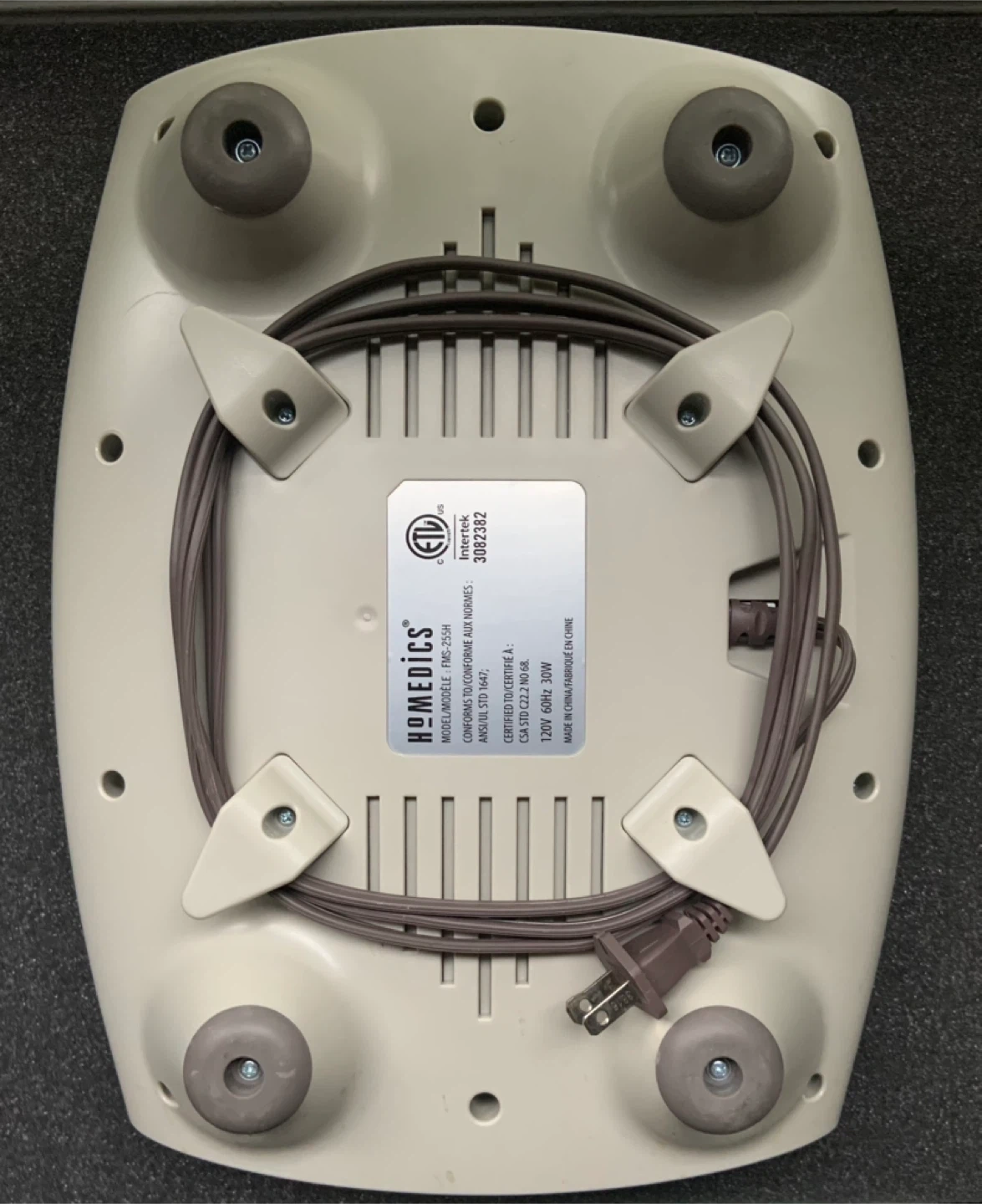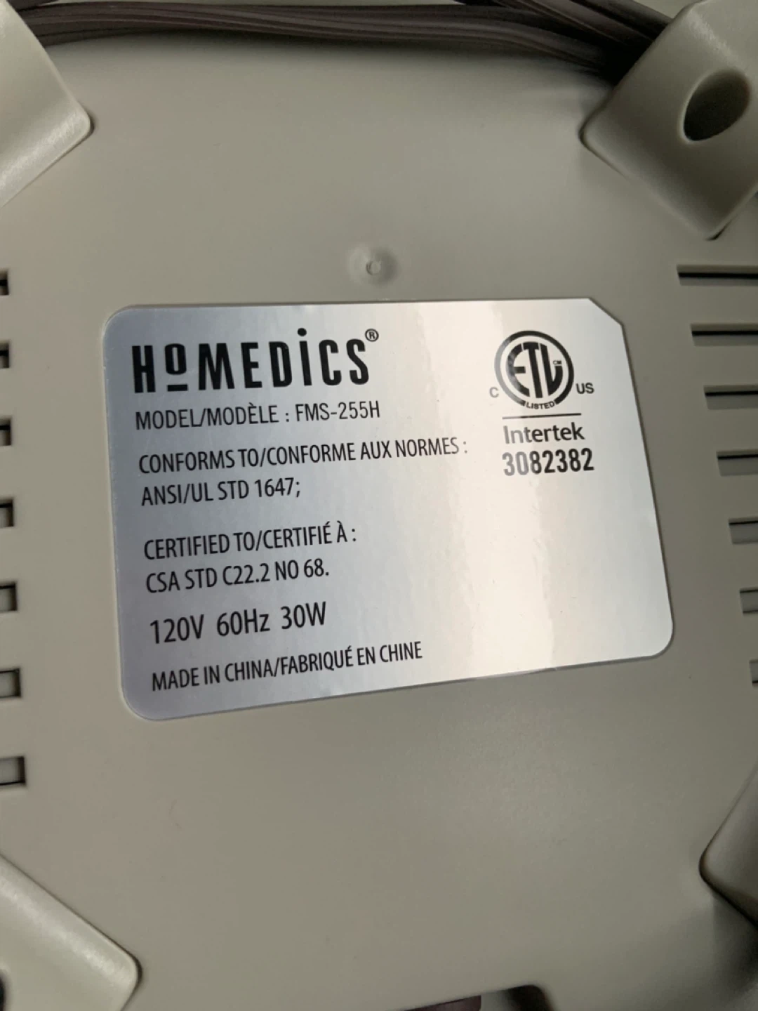 Selling a HoMedics Shiatsu massage cushion, model FMS-255H! It's in great shape and ready to help you relax those muscles after a long day. This cushion conforms to ANSI/UL STD 1647 and is certified to CSA STD C22.2 NO 68. It operates at 120V 60Hz 30W