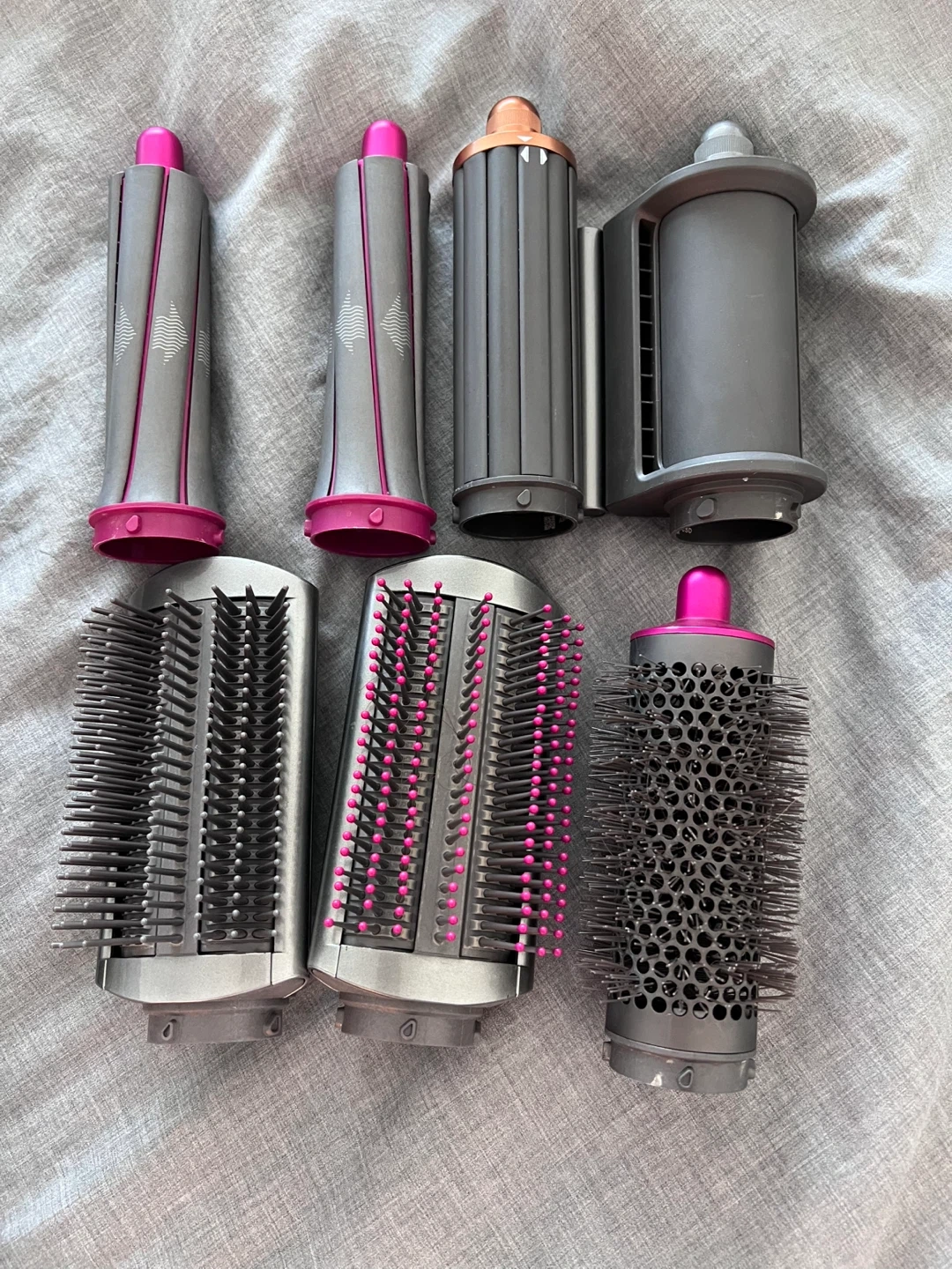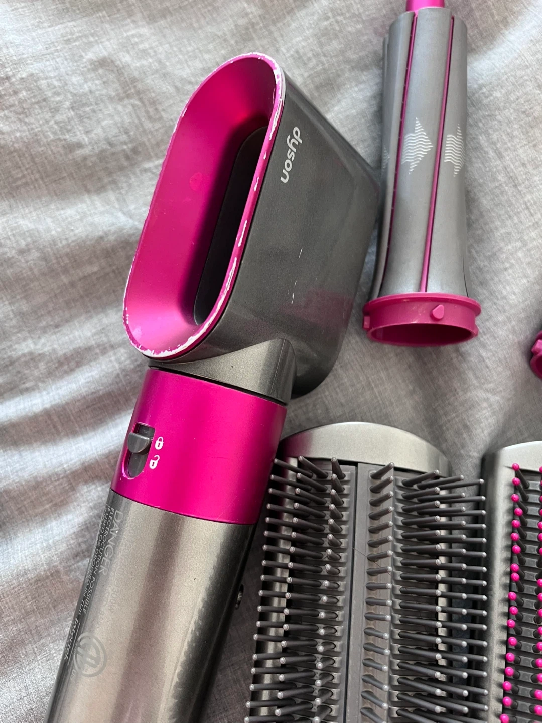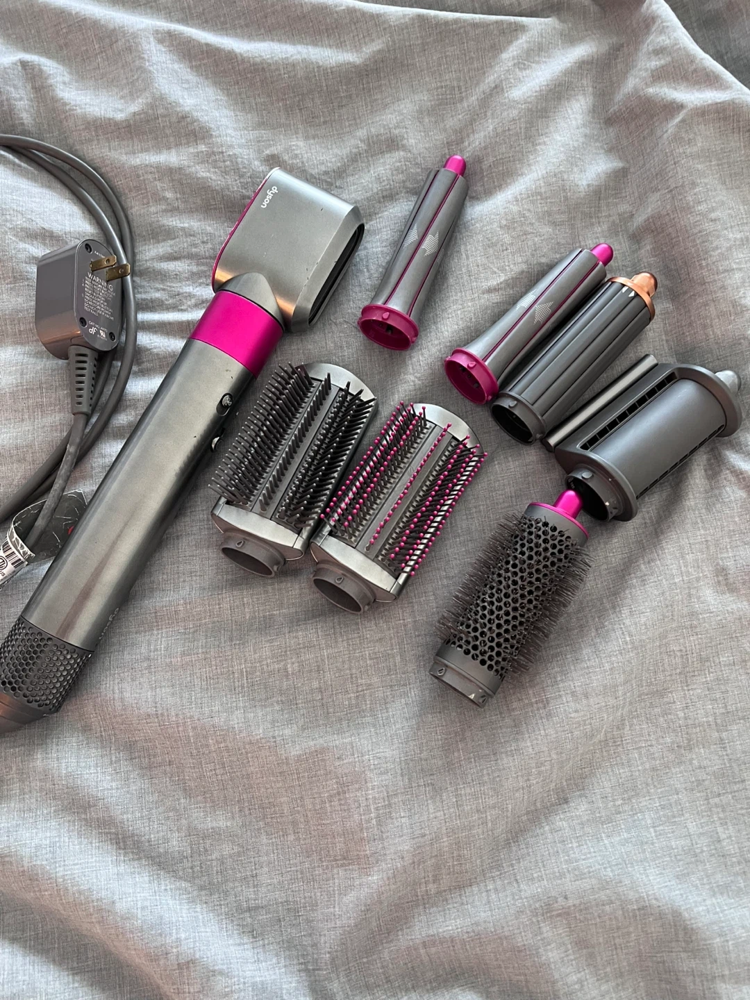 Selling a Dyson Airwrap Complete styler! It comes with all the attachments you see in the photos. This styler uses air to curl, wave, smooth, and dry hair, so it's gentle on your hair while creating beautiful styles. Few scratches but nothing wrong with the function