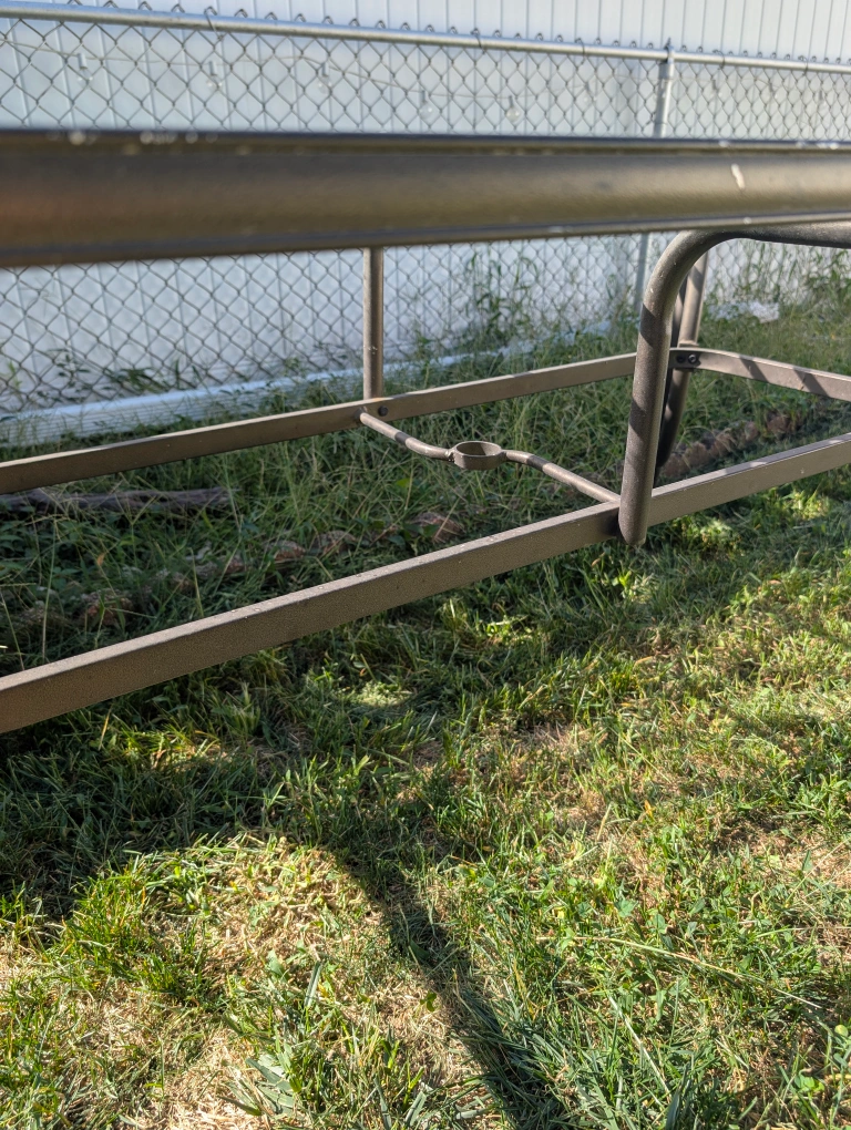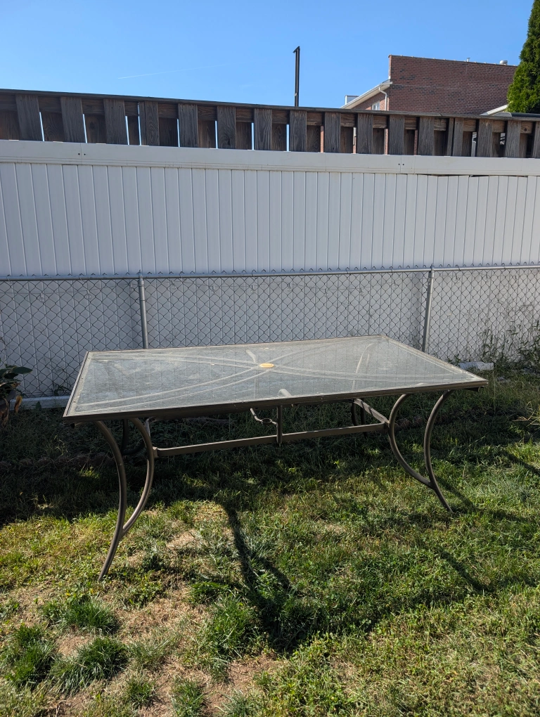 Giving away a used outdoor patio table with a glass top and metal frame. Space for an umbrella. Table is undamaged but needs a thorough cleaning from being outdoors! I'll do a quick clean of it before pick up, but would recommend a deep one once you bring it home.
