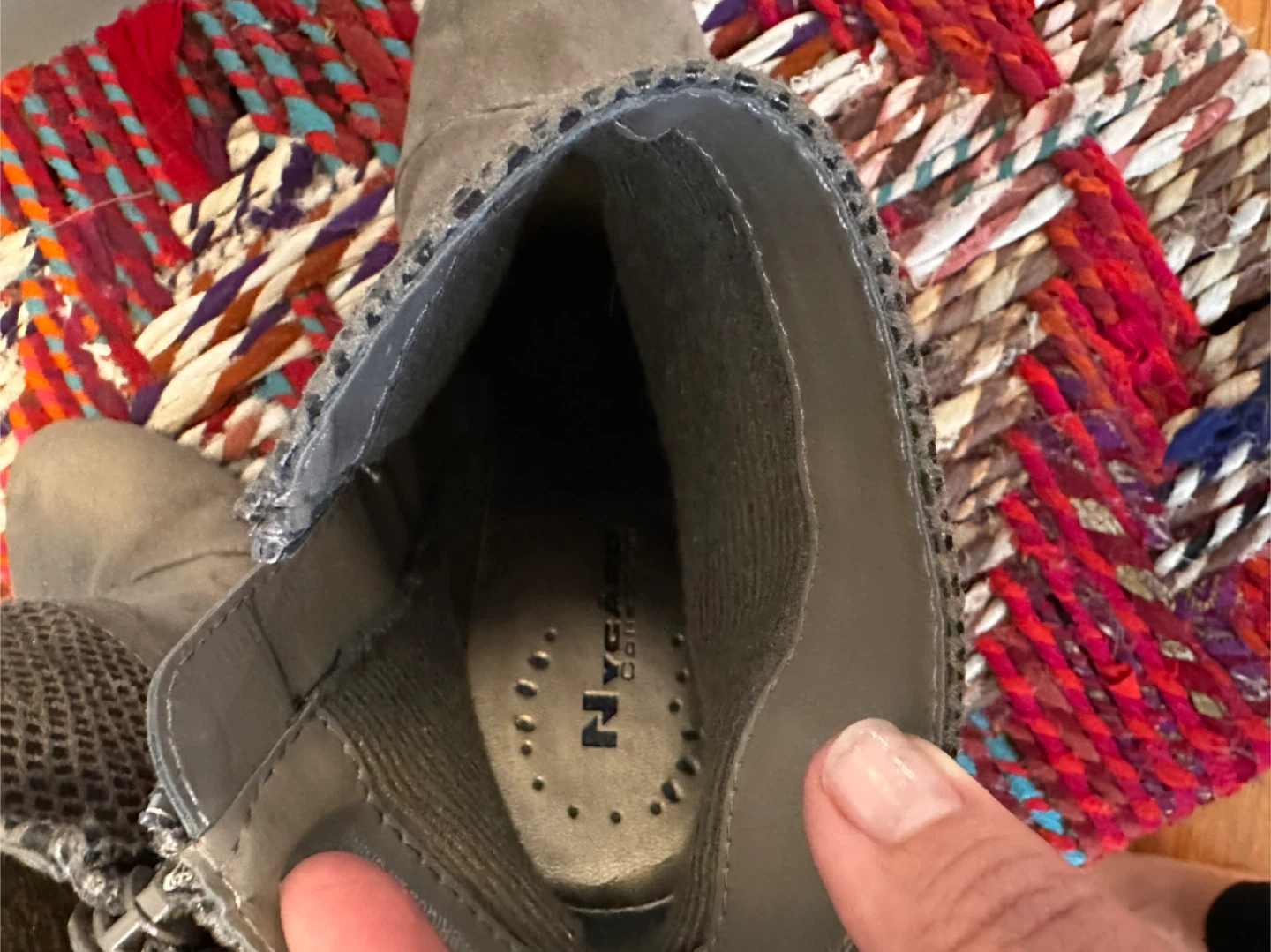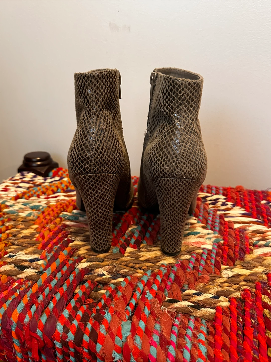 Stylish NYC & Company ankle boots in a neutral tone. They feature a textured upper and a comfortable heel. Size 8.