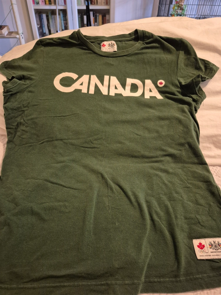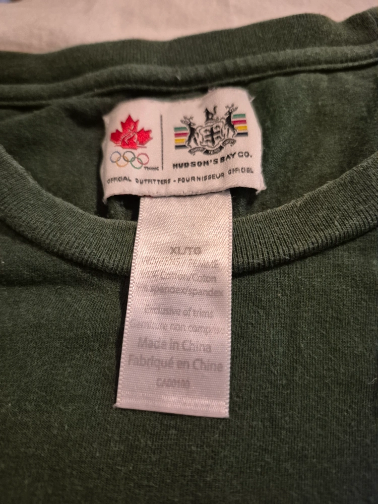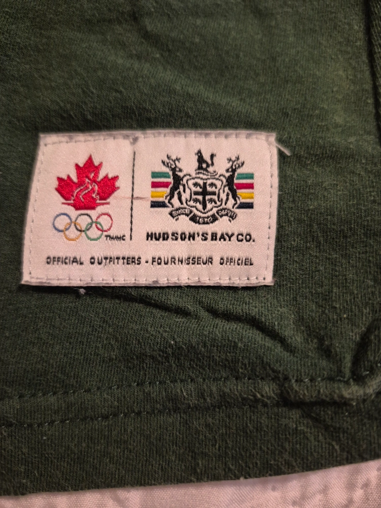 Selling a Hudson's Bay Co. Canada T-shirt in size XL/TG. It has the Olympic logo from Vancouver 2010. It also has the now defunct Hudson's Bay Co. logo. it was only worn a few times and has been stored away since. A great way to show your Canadian pride, and sure to become an HBC collectors piece.