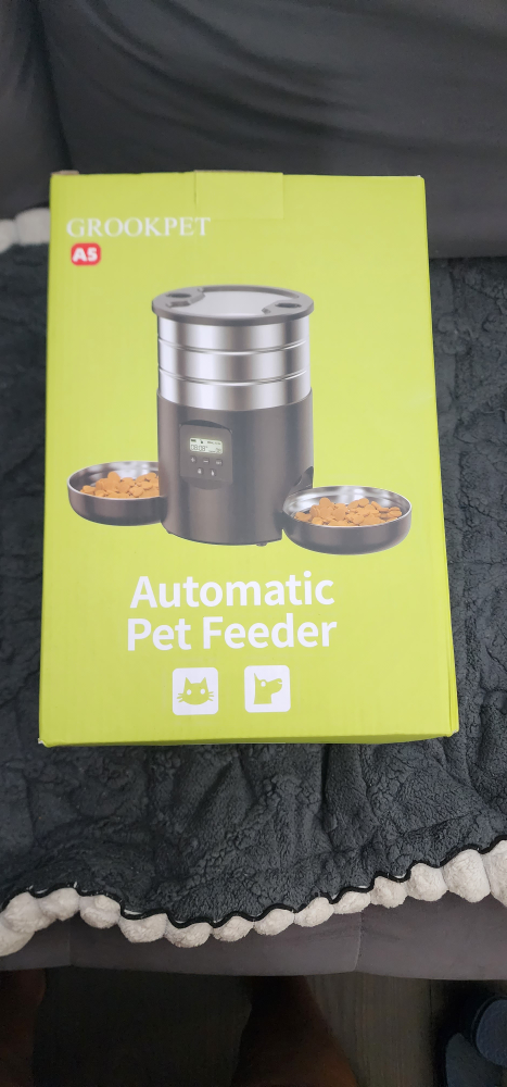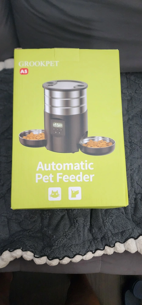Selling a Grookpet A5 automatic pet feeder. It's in great condition and comes in its original box. This feeder is designed to be easy to use and clean, with a removable design. It offers timed feeding and flexible automatic operation. It also supports dual power supply.