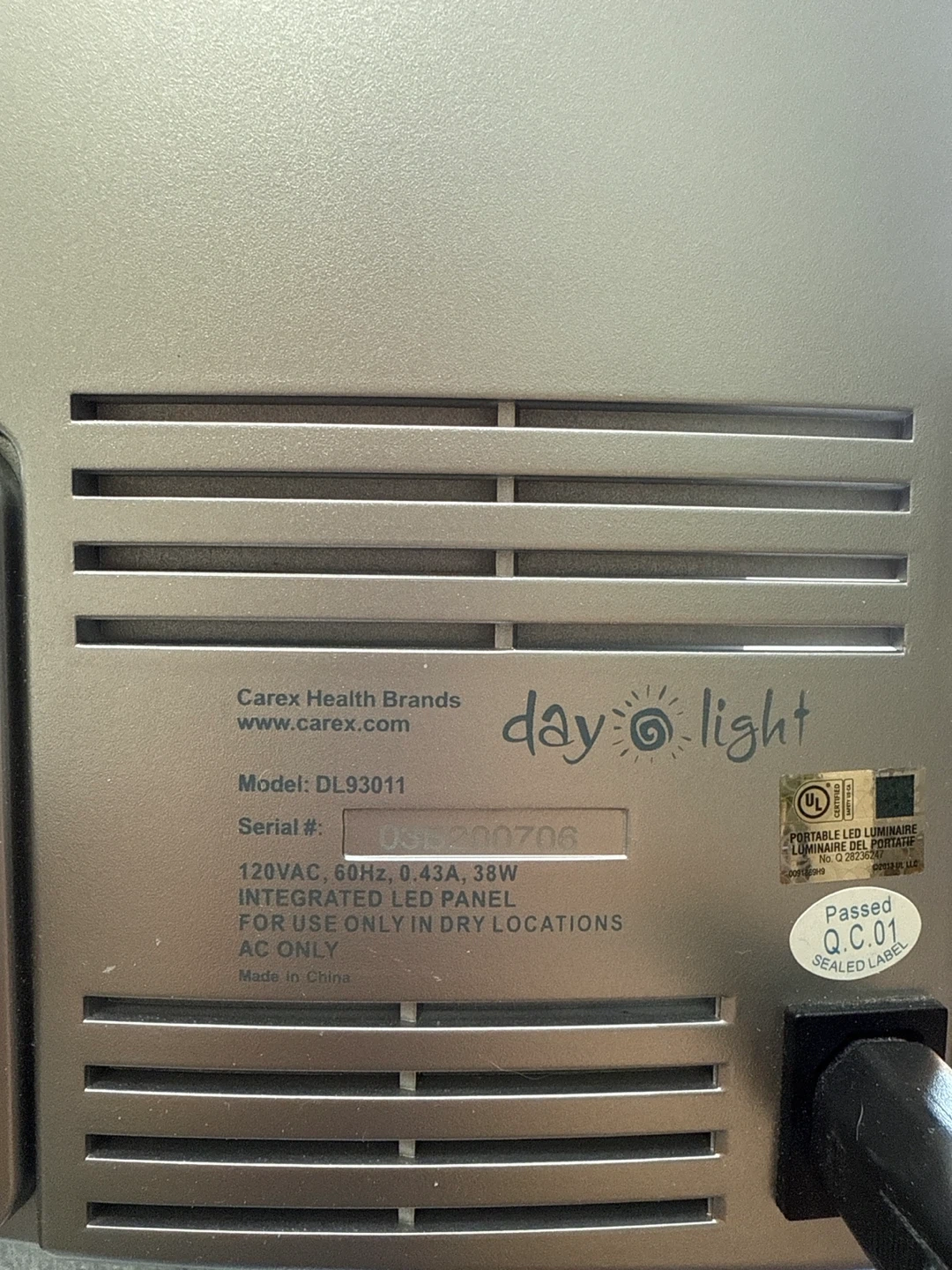 Selling a Carex Day-Light portable LED luminaire. This model is DL93011. It's in great shape and ready for the upcoming winter blues. It uses an integrated LED panel and is for use only in dry locations