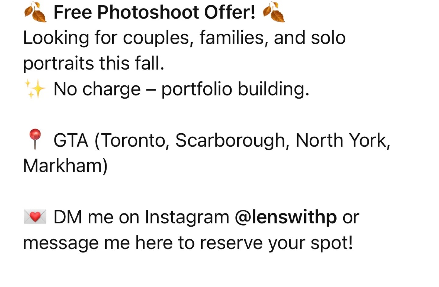 💌 DM me on Instagram @lenswithp or message me here to reserve your spot!