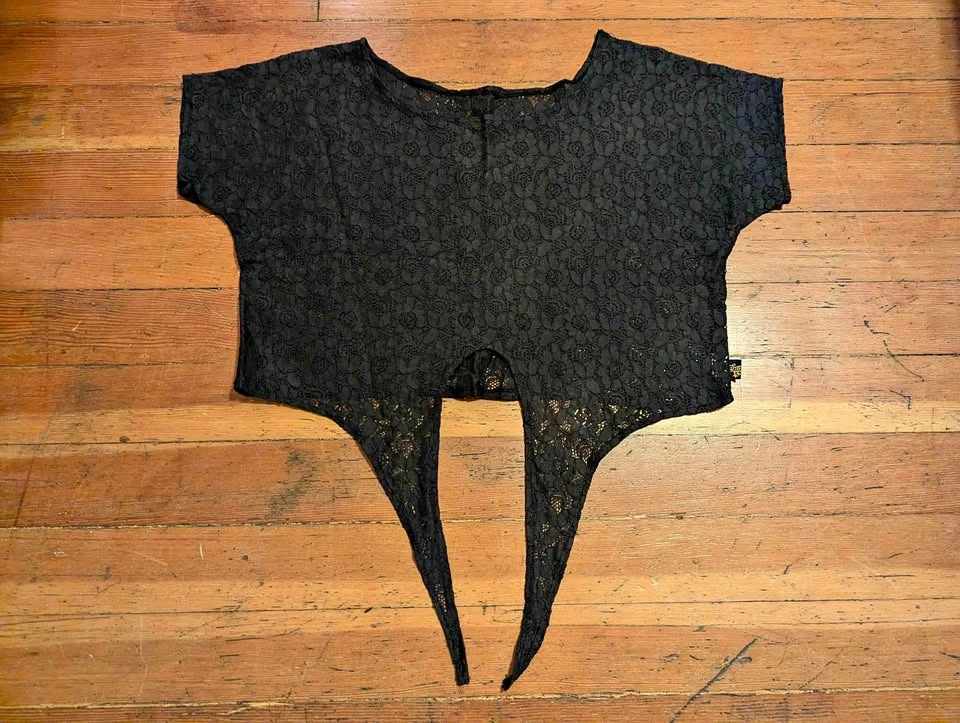 Black Mari and Billi lace top with front ties. One size would fit small to large depending how you want it to look. In like new condition. Worn once.