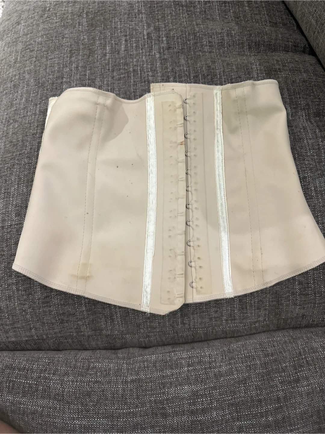 Selling a Stella's Corset in size 40. It's made of 76% latex line and steel, and 12% cotton. It's beige.