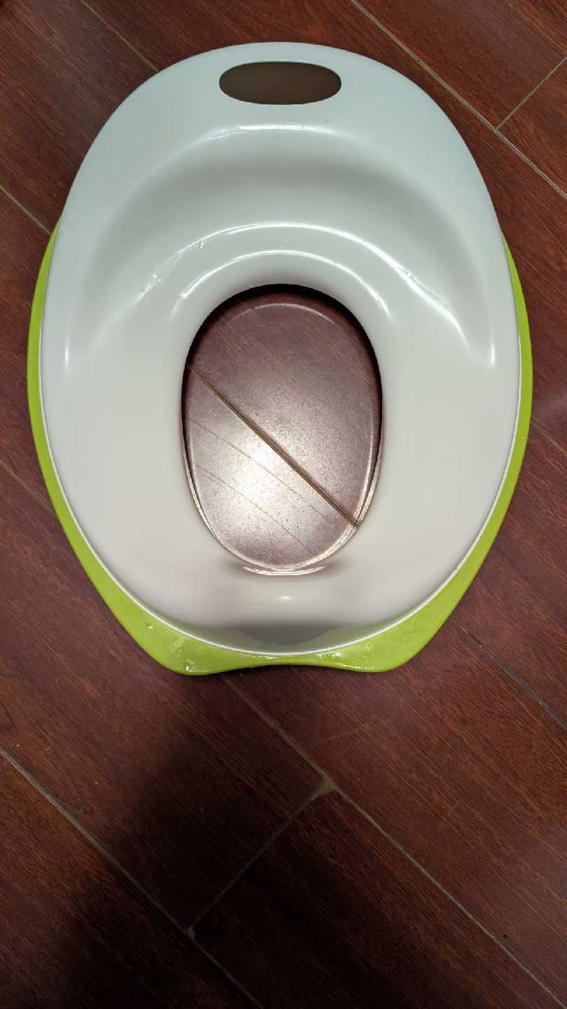A potty training seat in great condition! This seat is white with a green trim. It's designed to help make the transition to using the toilet easier for your little one. Ready for a new home!