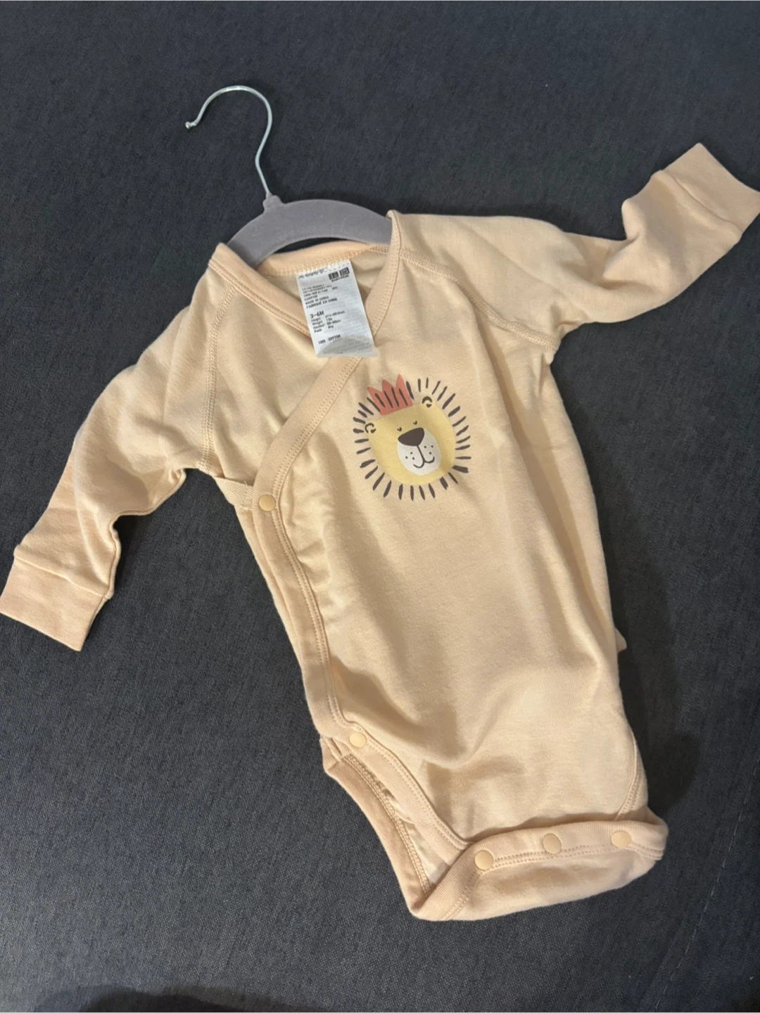 Selling a cute Uniqlo baby bodysuit with a sweet lion design! It's size 3-6 months and made from 100% cotton, so it's super soft and comfy for your little one. Perfect for everyday wear!