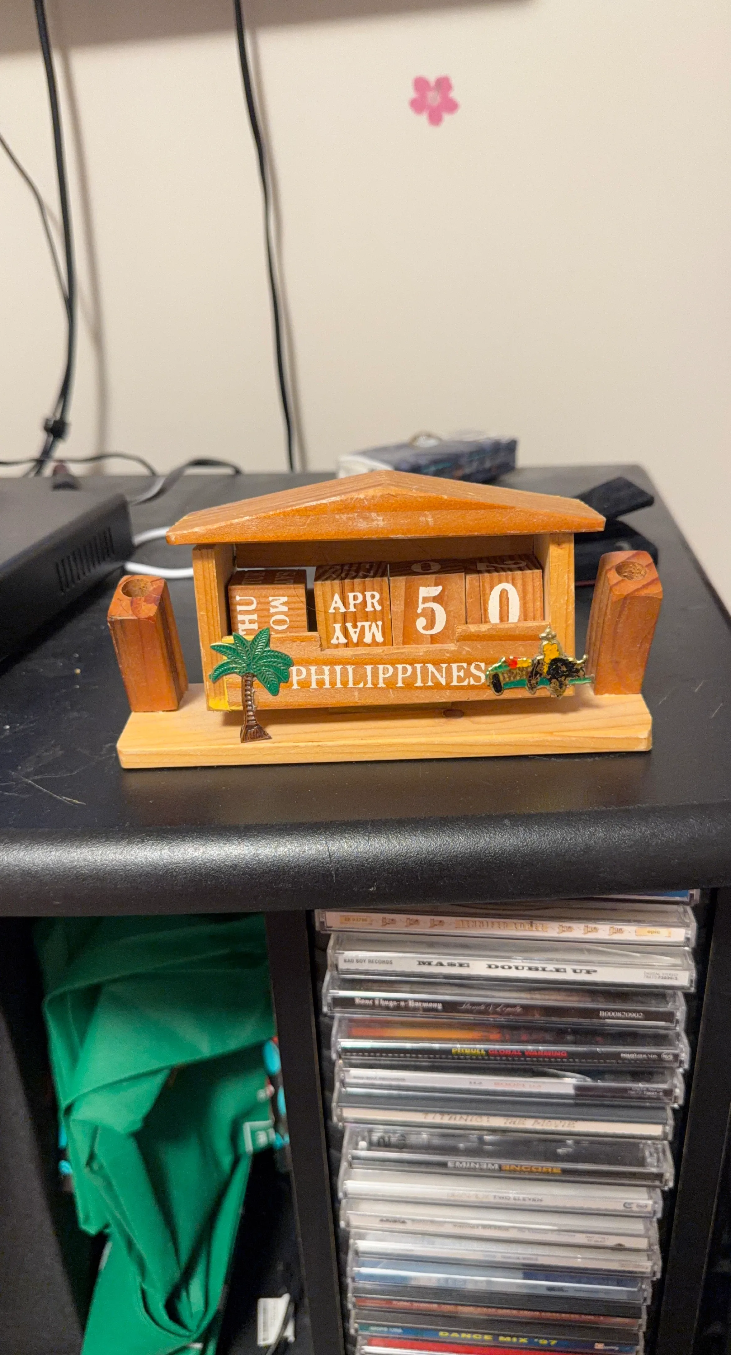 Buy & SellPhilippines Wooden Perpetual CalendarPhilippines Wooden Perpetual Calendar$10Wooden perpetual calendar with a Philippines theme! It features blocks to change the month and day, plus a cute little palm tree and jeepney detailConditionLike newWHERE TO MEETLoutet ParkView MapSELLERverifiedJoyceGrand Boulevard1376 reviews0 chats·0 favorites·4 viewsSEND CHAT TO SELLERHi Joyce! I’m interested in your listing.Hi Joyce! I’m interested in your listing.Get the Karrot app to chatSign In to chat